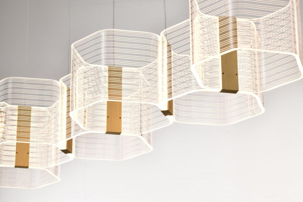Unveil the art of Modern design with the Kenzo Collection, where bold geometric styling meets sculptural elegance. The parallel lines create a dynamic visual effect, blending symmetry with artistry for a look that captivates. Edge-lit acrylic shades provid