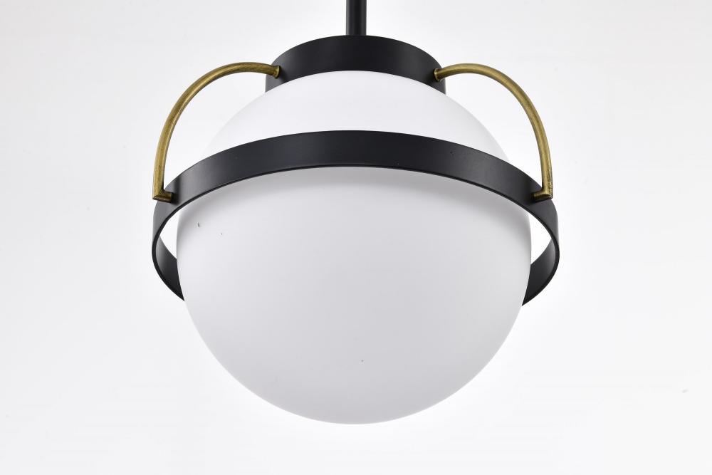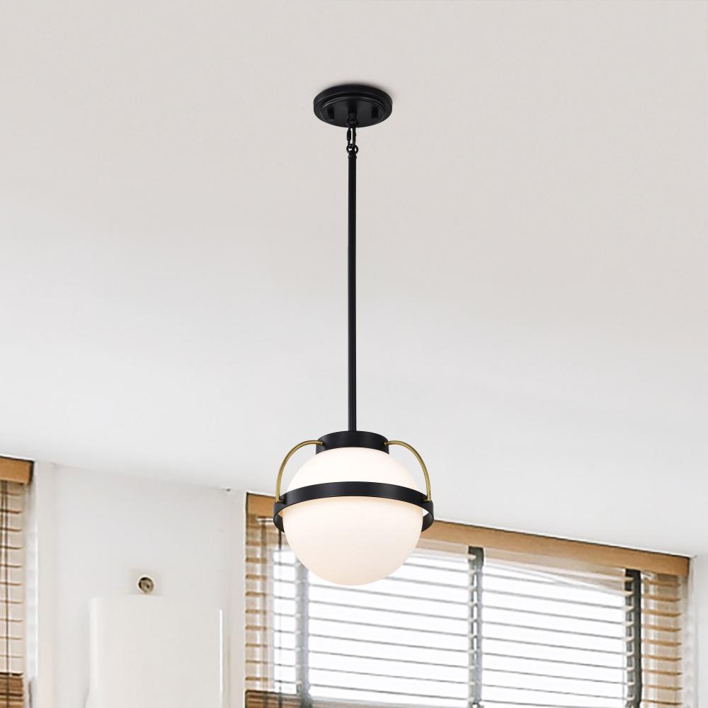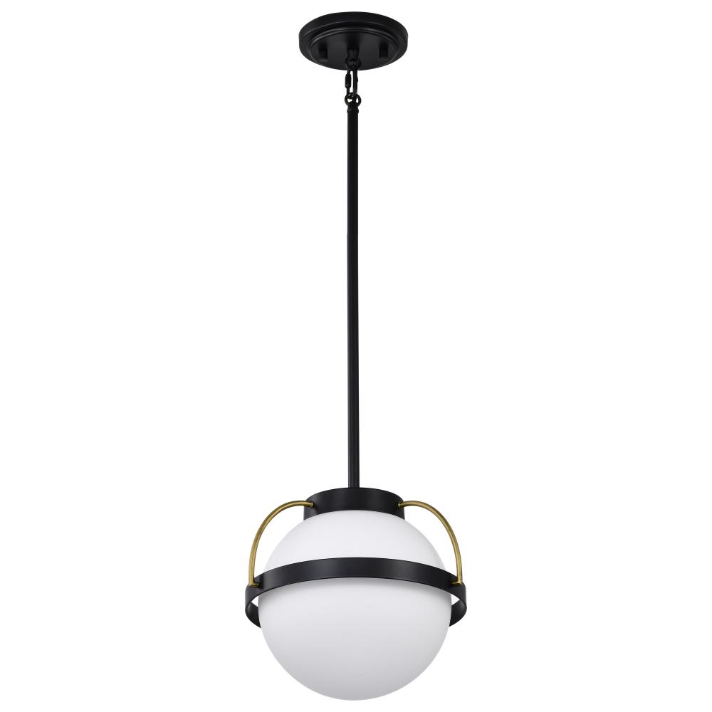 Lakeshore 1 Light Small Pendant; Matte Black & Natural Brass Finish; White Opal Glass