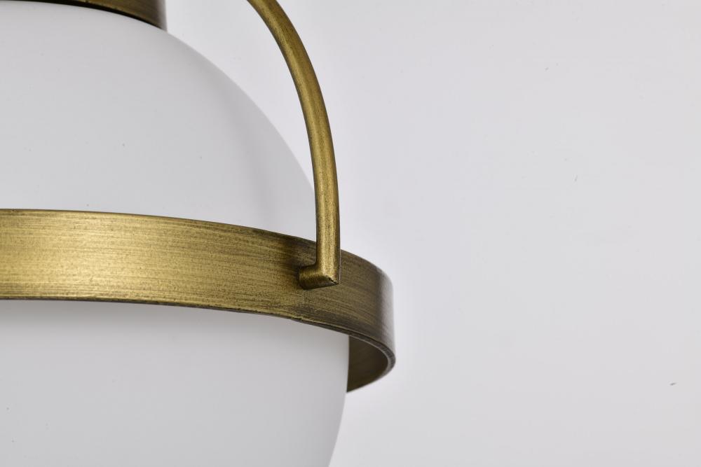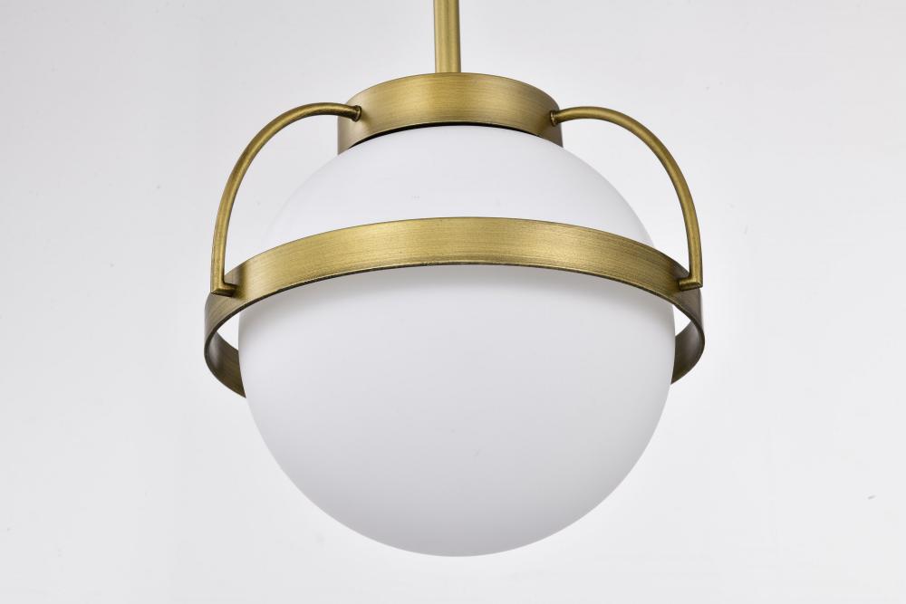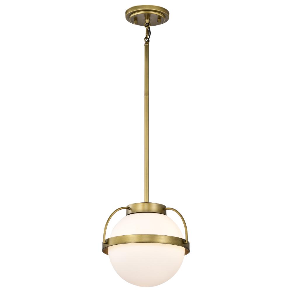 Lakeshore 1 Light Small Pendant; Natural Brass Finish; White Opal Glass