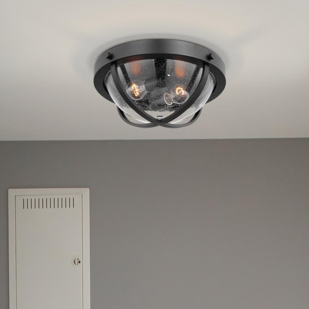Lincoln; 2 Light Large Flush Mount; Medium Base; 60 Watt; Matte Black Finish; Clear Seeded Glass