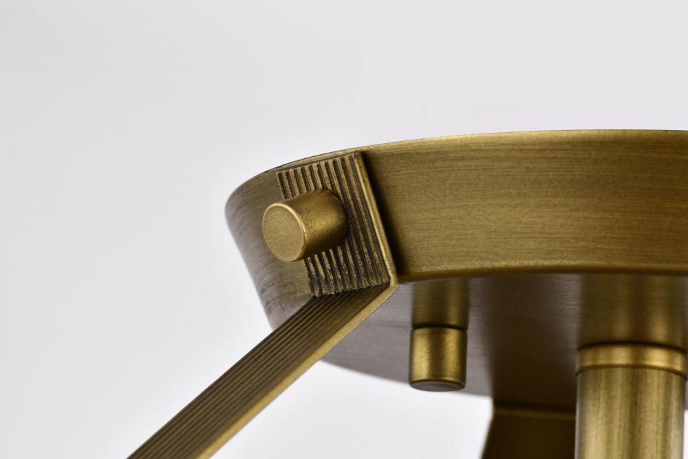 Rowen 3 Light Semi Flush; Natural Brass Finish; Etched White Glass