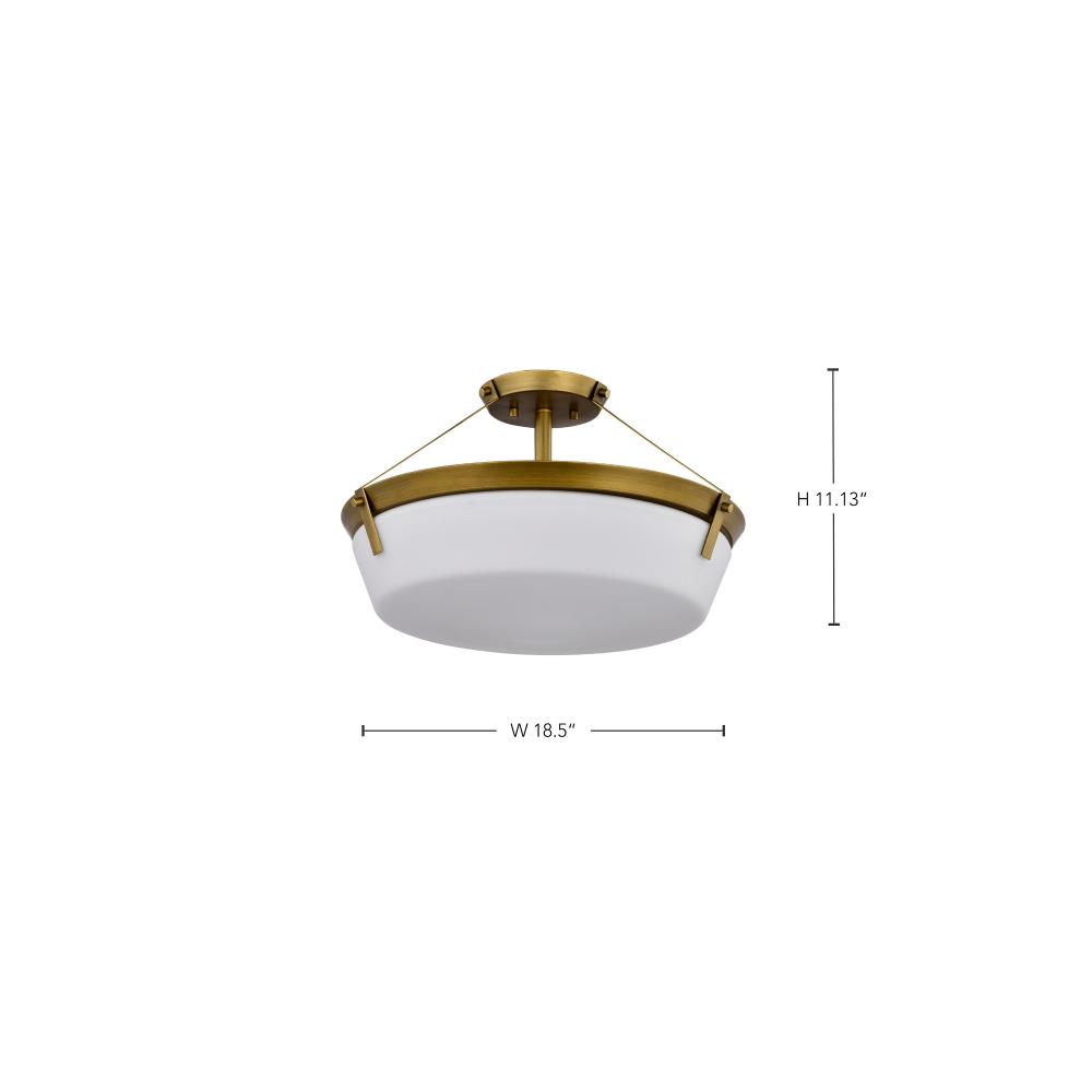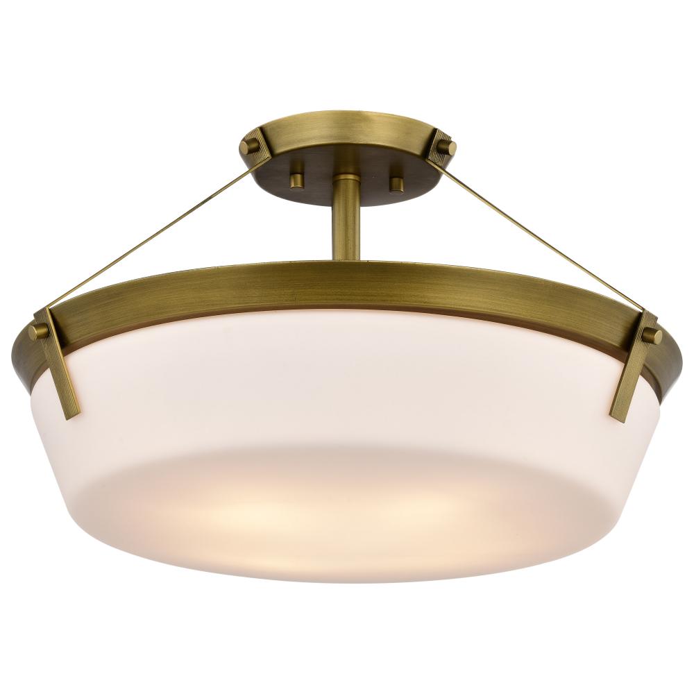The Rowen 60-7752 semi-flush mount is a versatile lighting fixture that exudes elegance and sophistication. The natural brass finish gives the fixture a warm and inviting look, while the etched white glass diffuses the light to create a soft and ambient gl