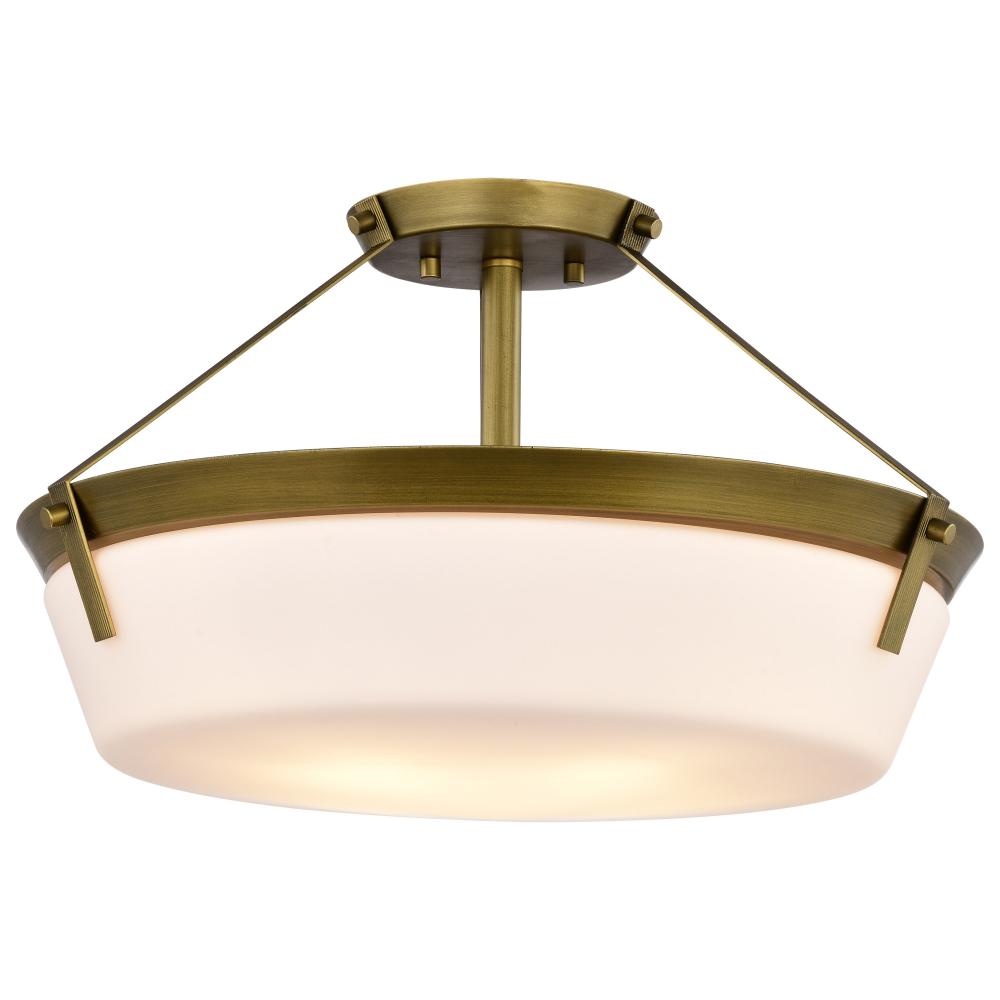 Rowen 4 Light Semi Flush; Natural Brass Finish; Etched White Glass