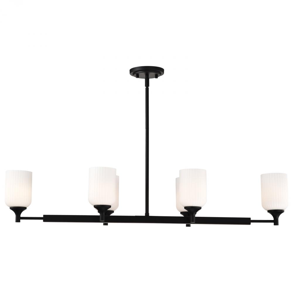 Solara; 6 Light Island Pendant; Matte Black Finish; Frosted Ribbed Glass