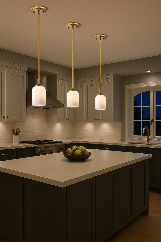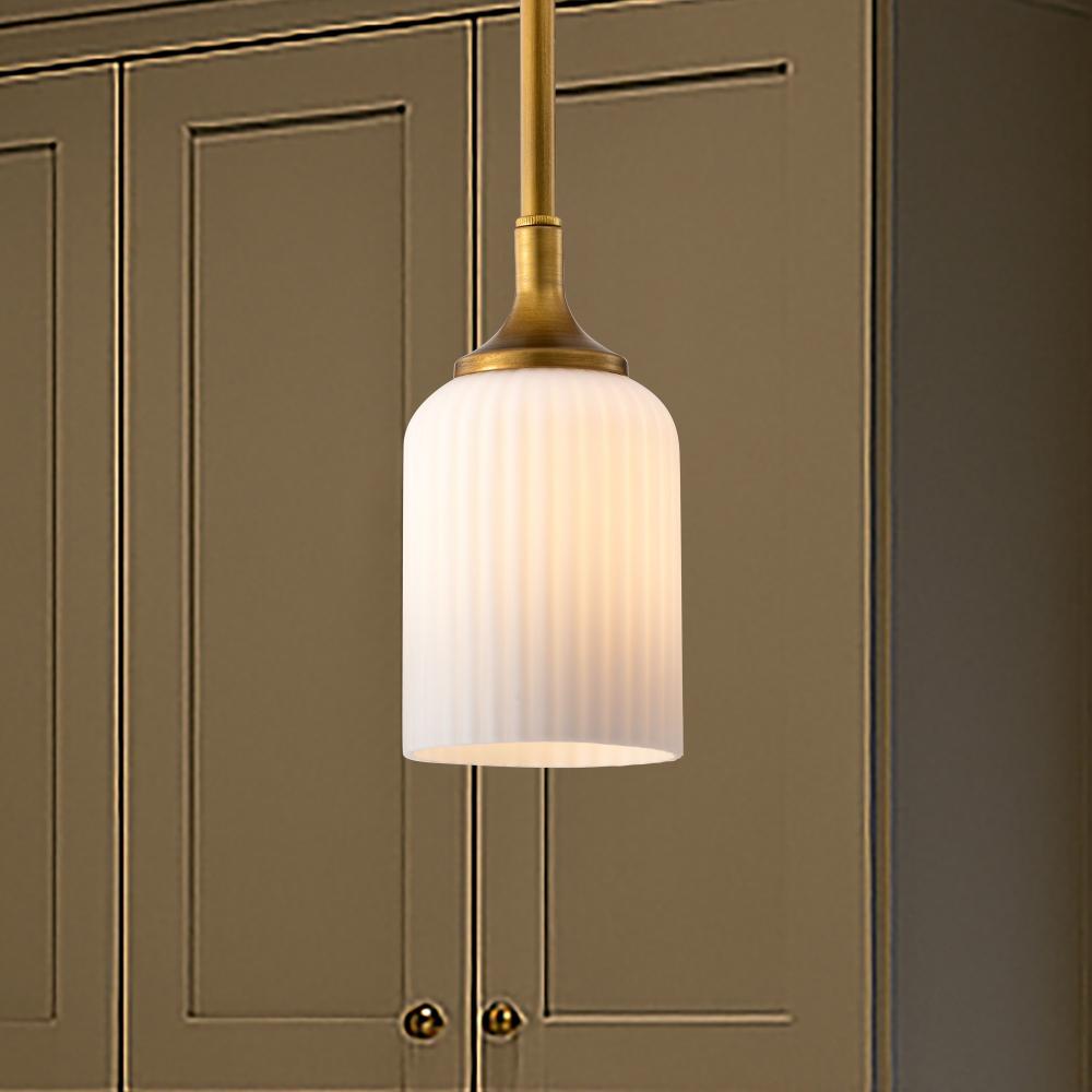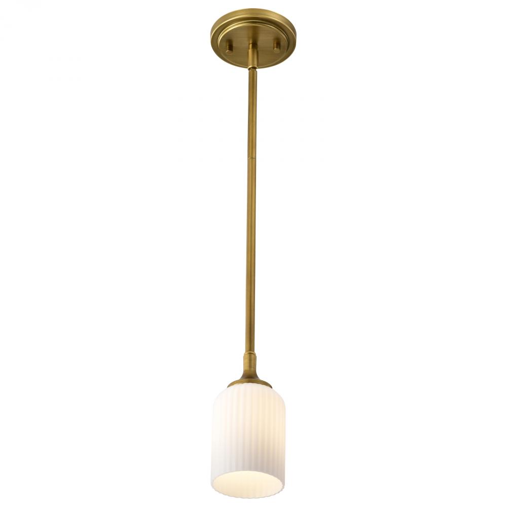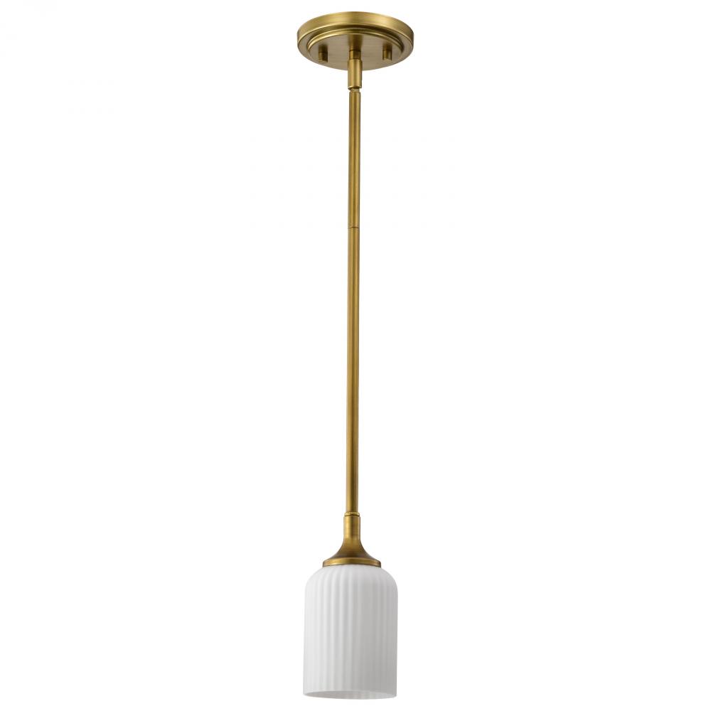 Solara; Mini Pendant; Natural Brass Finish; Frosted Ribbed Glass