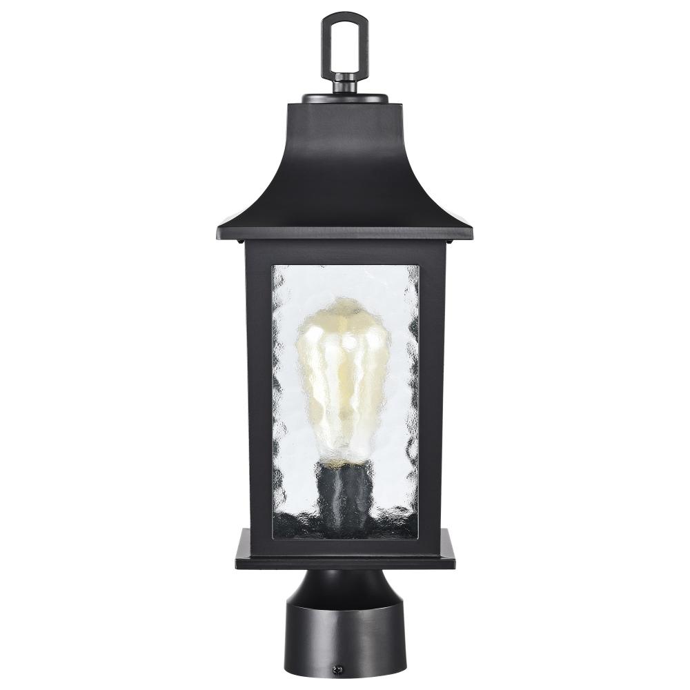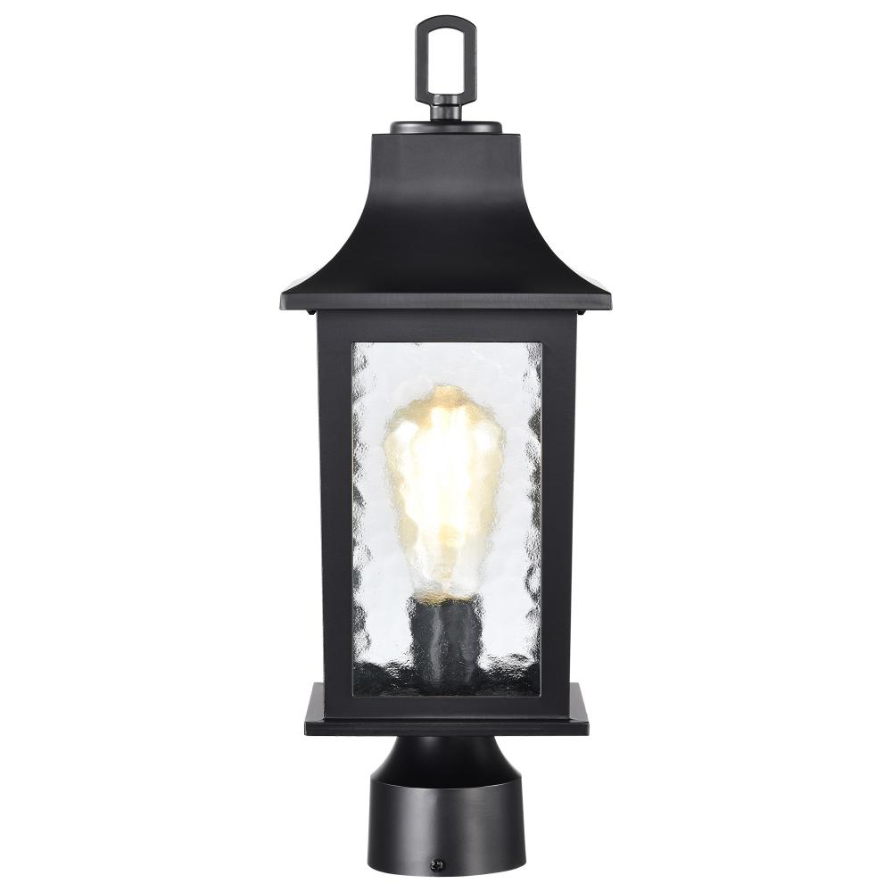 Stillwell Collection Outdoor 17 inch Post Light Pole Lantern; Matte Black with Clear Water Glass