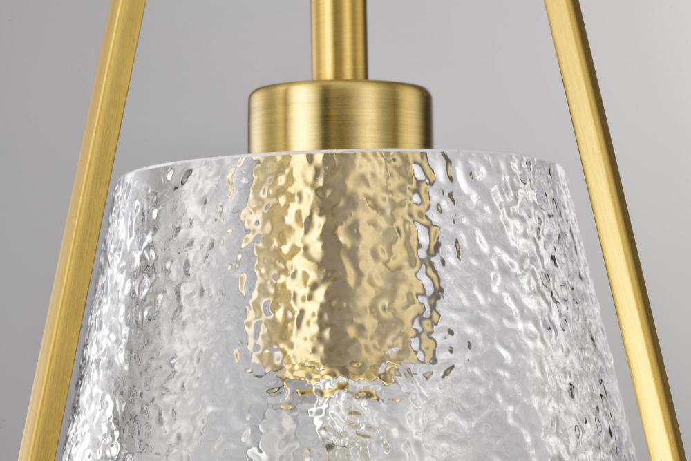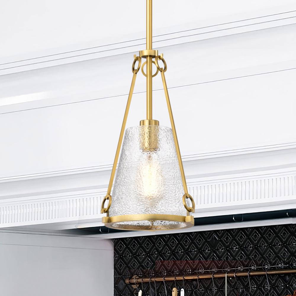 Valentine; Small Pendant; Vintage Brass Finish; Hammered Glass