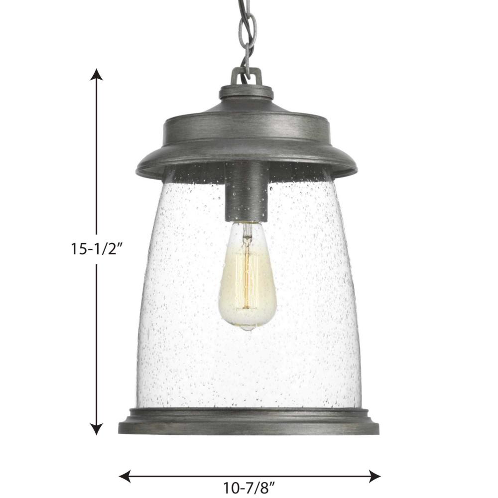 Conover is an outdoor lantern collection featuring nautical influences. A protective die cast ring surrounds beautiful clear seeded glass. Vintage metallic finishes are available for this collection that is sure to enhance curb appeal for a variety of exteriors. Hanging Lantern in a Antique Pewter finish.