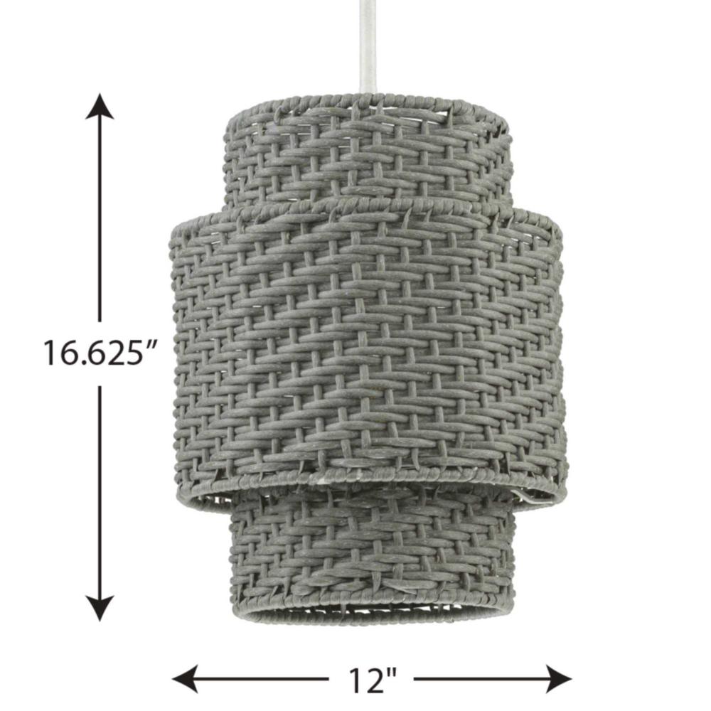Infuse your favorite living space with rugged organic style with the Manteo Collection 1-Light Weathered Grey Rattan White Etched Shade Global Outdoor Hanging Pendant Light. The natural-looking synthetic rattan shade accented by the crisp cottage white stem adds a unique warm touch to your home decor. Warm, subtle light filters through the double-shade design to create a glowing ambiance.