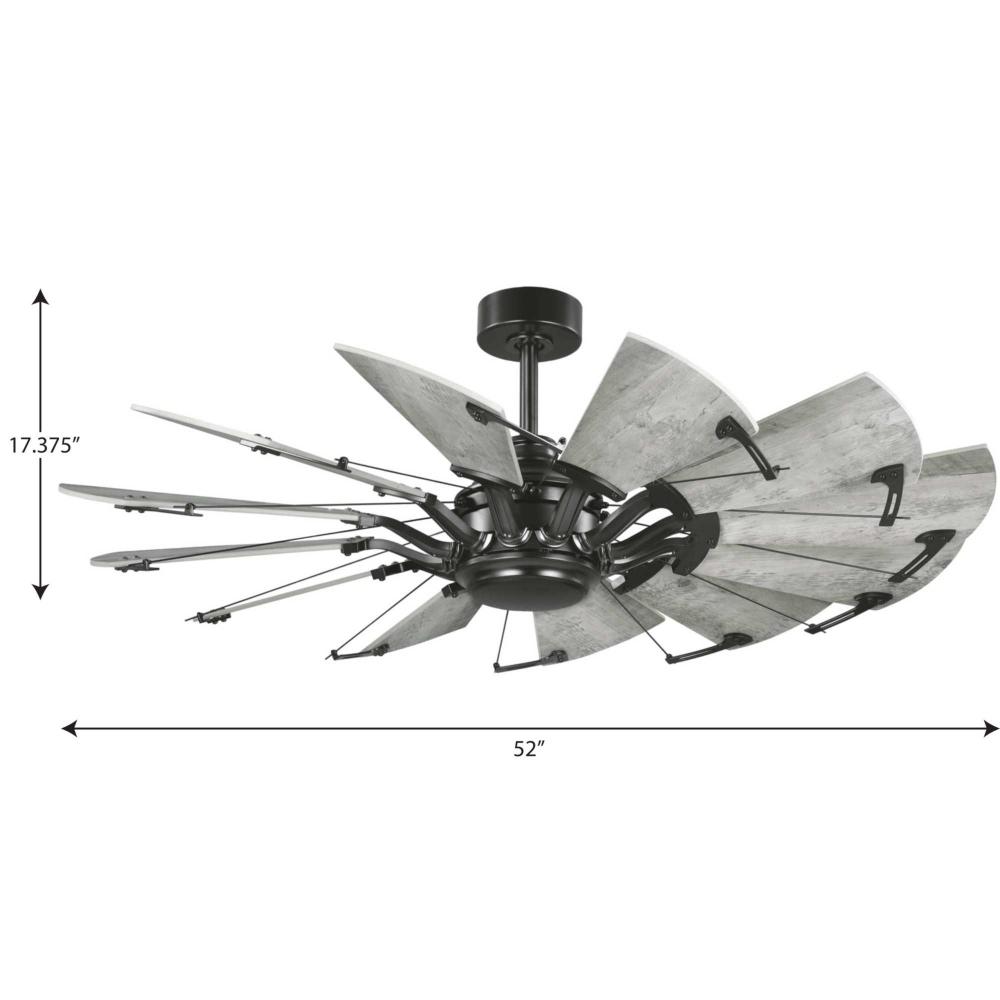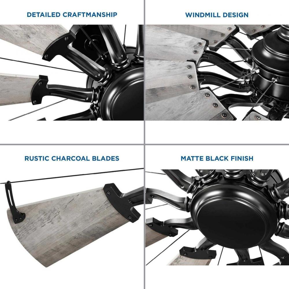 Relax under the refreshing breeze of the Springer Collection 52-Inch 12-Blade Rustic Charcoal DC Motor Farmhouse Windmill Ceiling Fan ideal for any great room, bedroom, living room, or bonus room. Perfect for farmhouse, rustic, and coastal style settings. Ideal for boosting airflow in smaller spaces. 12 sweeping blades are coated in a rustic charcoal finish for rustic flair.