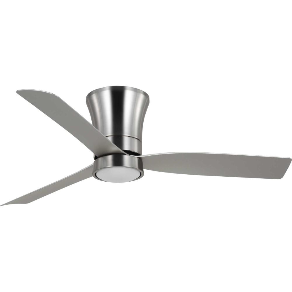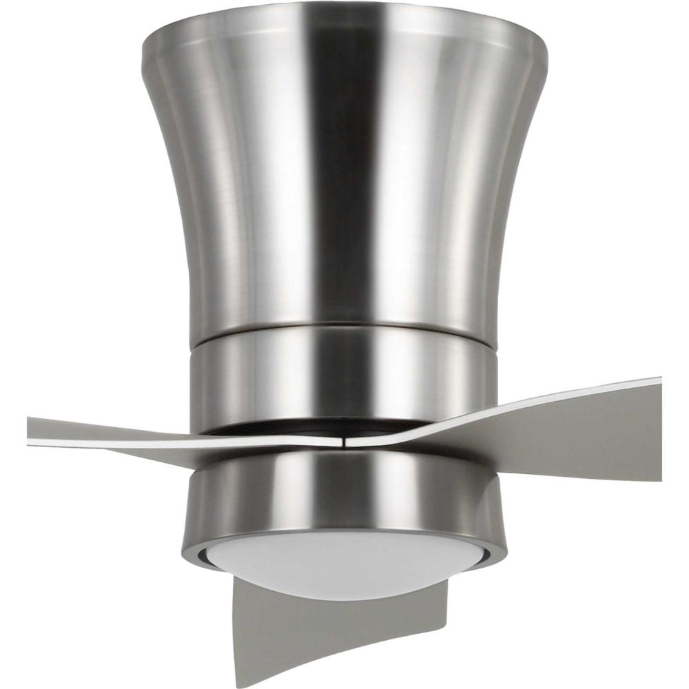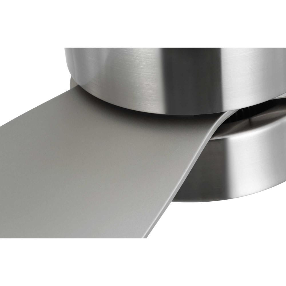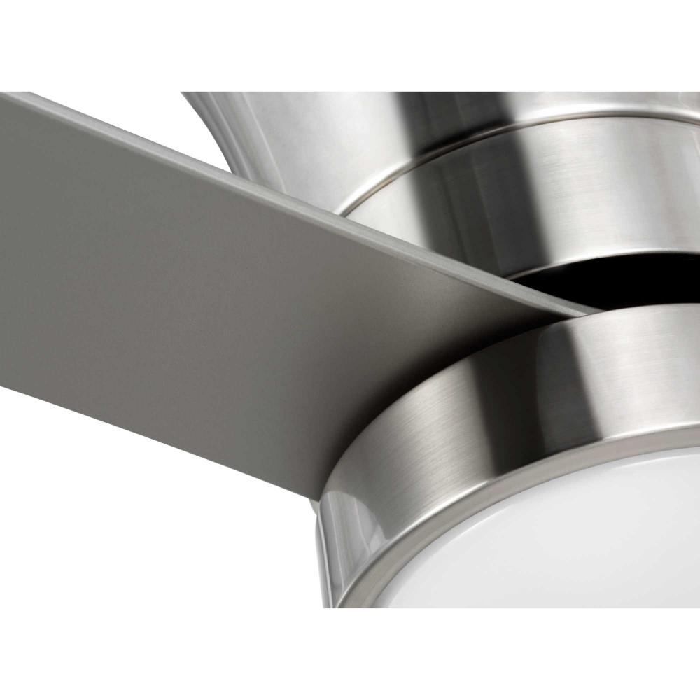 Mid-century modern style housing and blades are finished in Brushed Nickel with a Brushed Nickel Accent