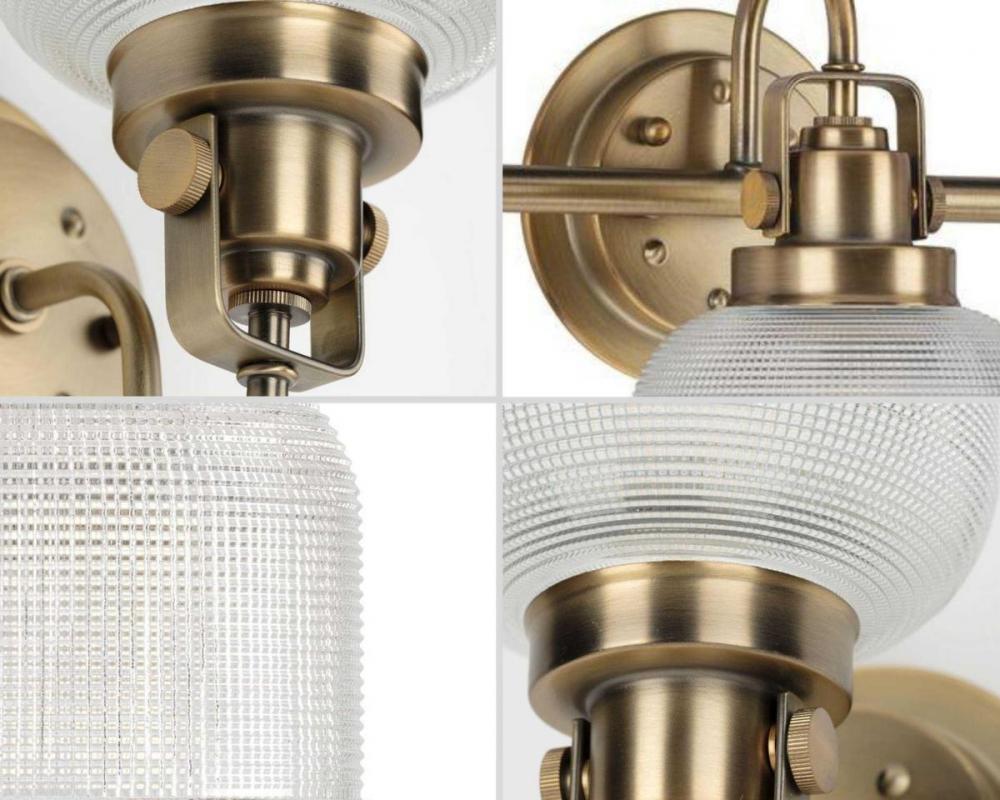 Ideal for a bathroom;Perfect for coastal, farmhouse, transitional, and vintage electric style settings;Golden vintage brass finish;Stunning clear double prismatic glass shades;Mount the light fixture facing up or down;Use 3 medium base bulbs that are sold