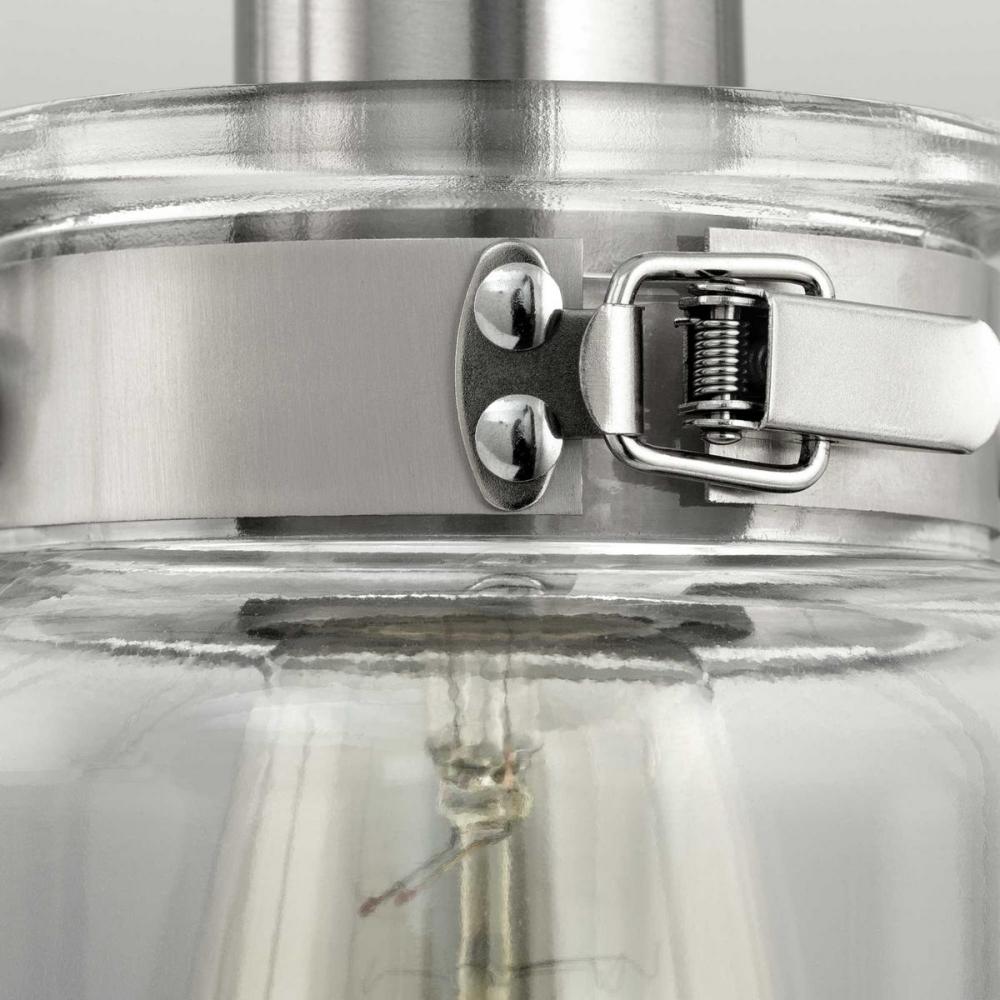 Ideal for a bathroom;Perfect for farmhouse and urban industrial style settings;Beautiful brushed nickel finish;Crisp clear glass shades;Mount the light fixture facing up or down;Use 4 medium base bulbs that are sold separately (100 W max - LED/CFL/incandes