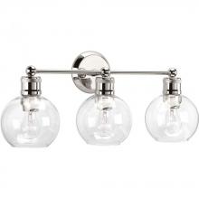Ideal for a bathroom;Perfect for coastal, farmhouse, and vintage electric style settings;Handsome antique bronze finish with vintage brass accents;Crisp clear glass shades;Mount the light fixture facing up or down;Use 3 medium base bulbs that are sold sepa