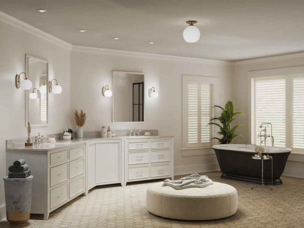 Ideal for a bathroom, hallway, or foyer;Perfect for mid-century modern and modern style settings;Beautiful vintage gold finish;Elegant opal glass shade;Mount the light fixture facing up or down;Use 1 medium base bulb that is sold separately (75 W max - LED