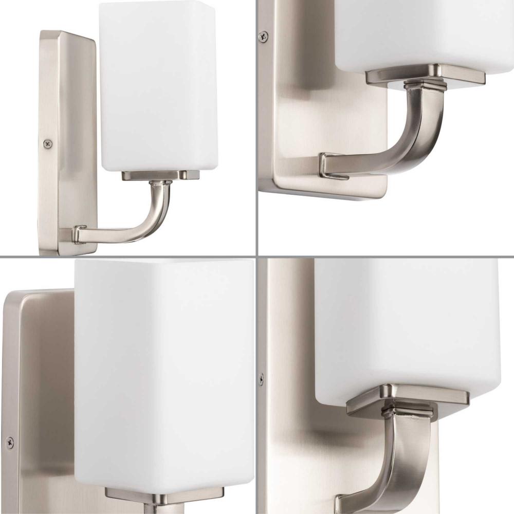 A contemporary urban aesthetic and warm ambient lighting create a relaxed atmosphere in bathrooms, bedrooms, hallways and foyers;An elegant combination of etched opal glass, brushed nickel finish and contemporary styling make this wall light ideal for mode