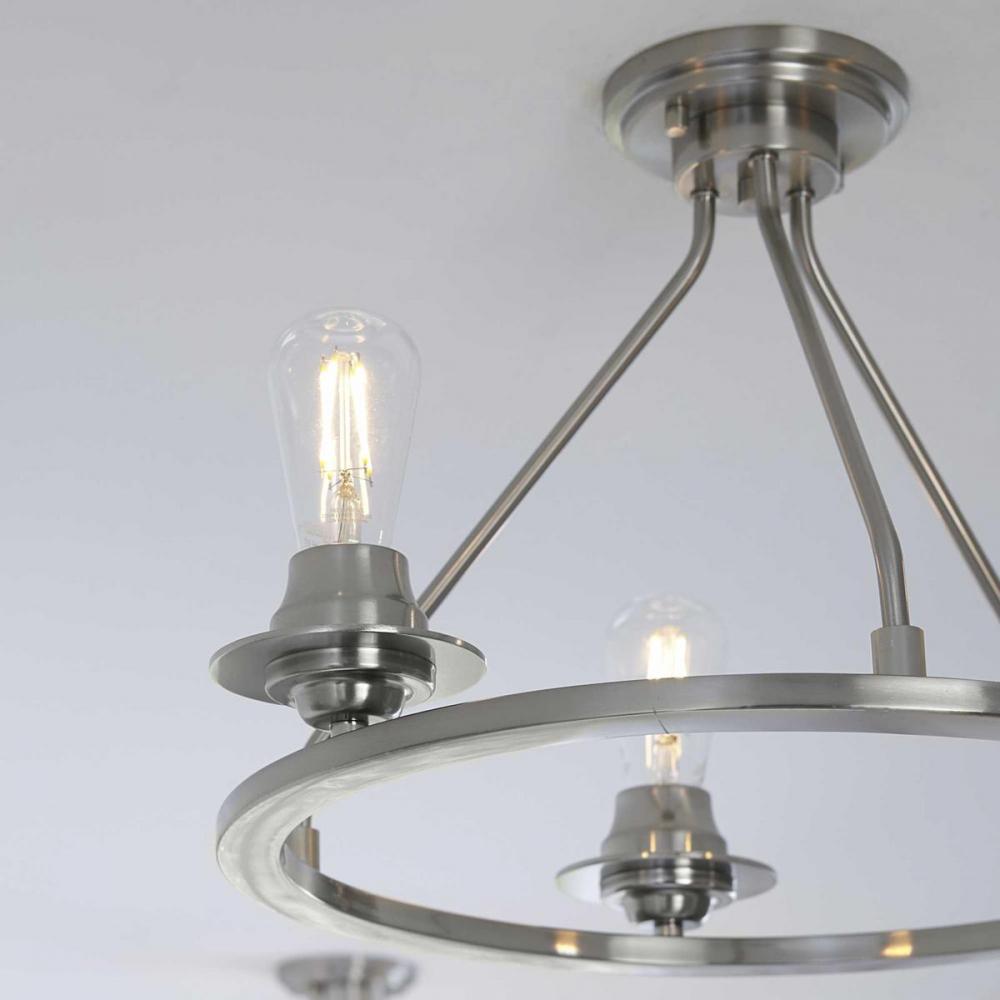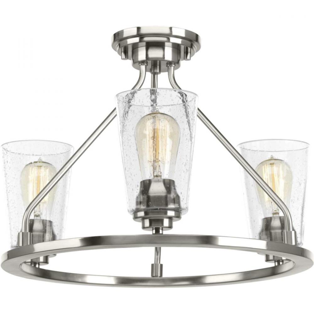 A new category of vintage modern fixtures takes center stage with this semi-flush, convertible fixture from one of our Design Series collections. Delicate details in a Brushed Nickel finish, create statement making focal pieces for a variety of interiors. Debut provides a fitting stage to feature nostalgic, vintage lamps. Glass accessory shades available in clear or frosted seeded finishes.