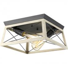 Create a cozy home with the Briarwood Collection 2-Light Bleached Oak Farmhouse Flush Mount Ceiling Light. Light sources exude a comforting country glow as they peak through the classic X-brace design reminiscent of country barn doors and rustic farmhouse gates. A faux-wood frame coated in a rustic bleached oak finish accented by a galvanized plate on top of the structure infuses the ceiling light with charming country character.