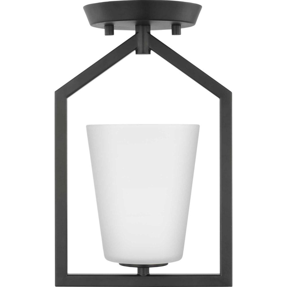 A lovely matte black frame define the fixture's distinct, angular silhouette