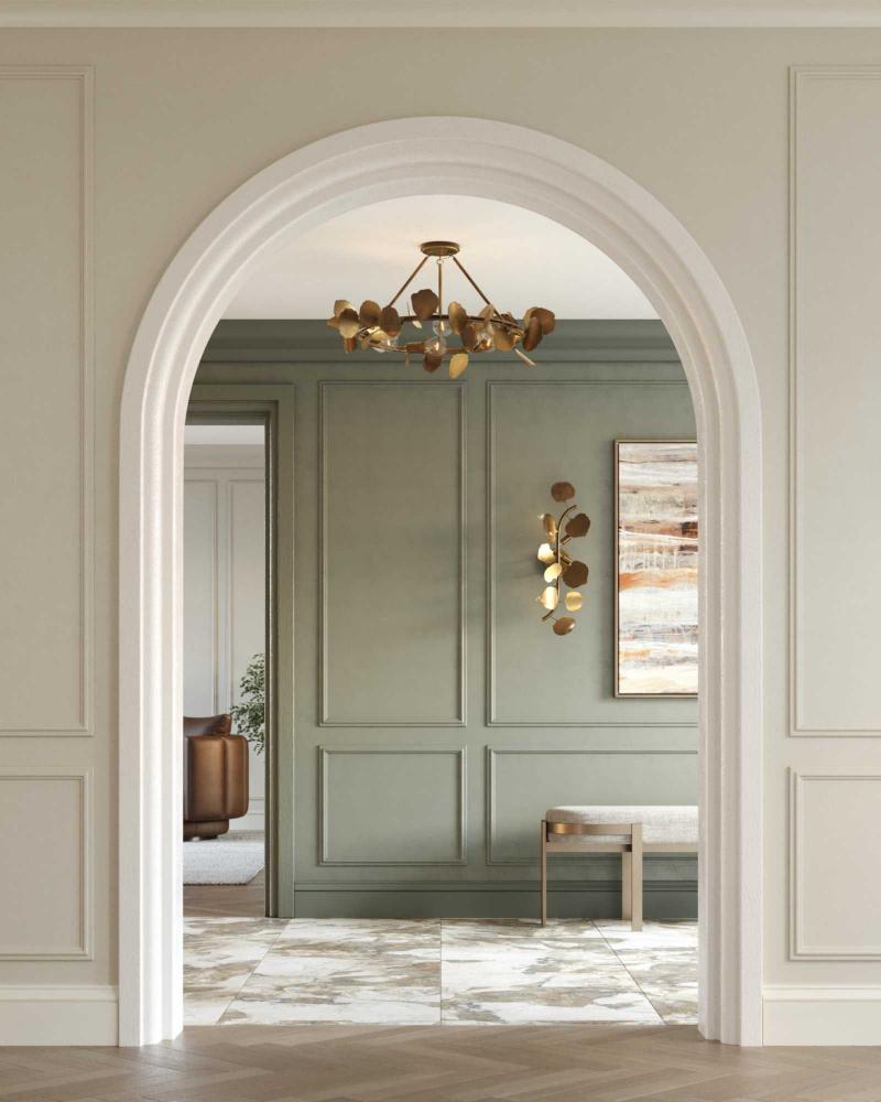 Natural, whimsical leaves and sophisticated lines fits beautifully in transitional, luxe, and modern organic rooms