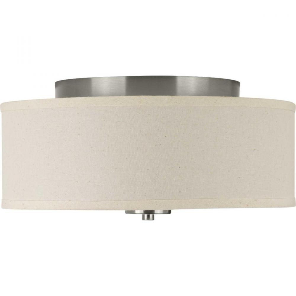 Harkening back to a simpler time, the Inspire Collection freshens traditional forms with flowing lines. The one-light Brushed Nickel LED flush mount Inspire features an etched glass diffuser with an off-white linen shade.