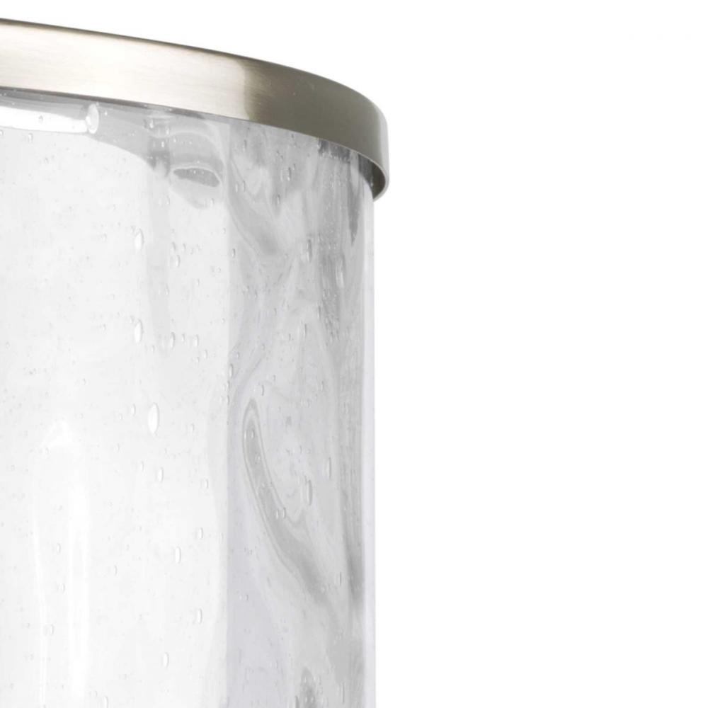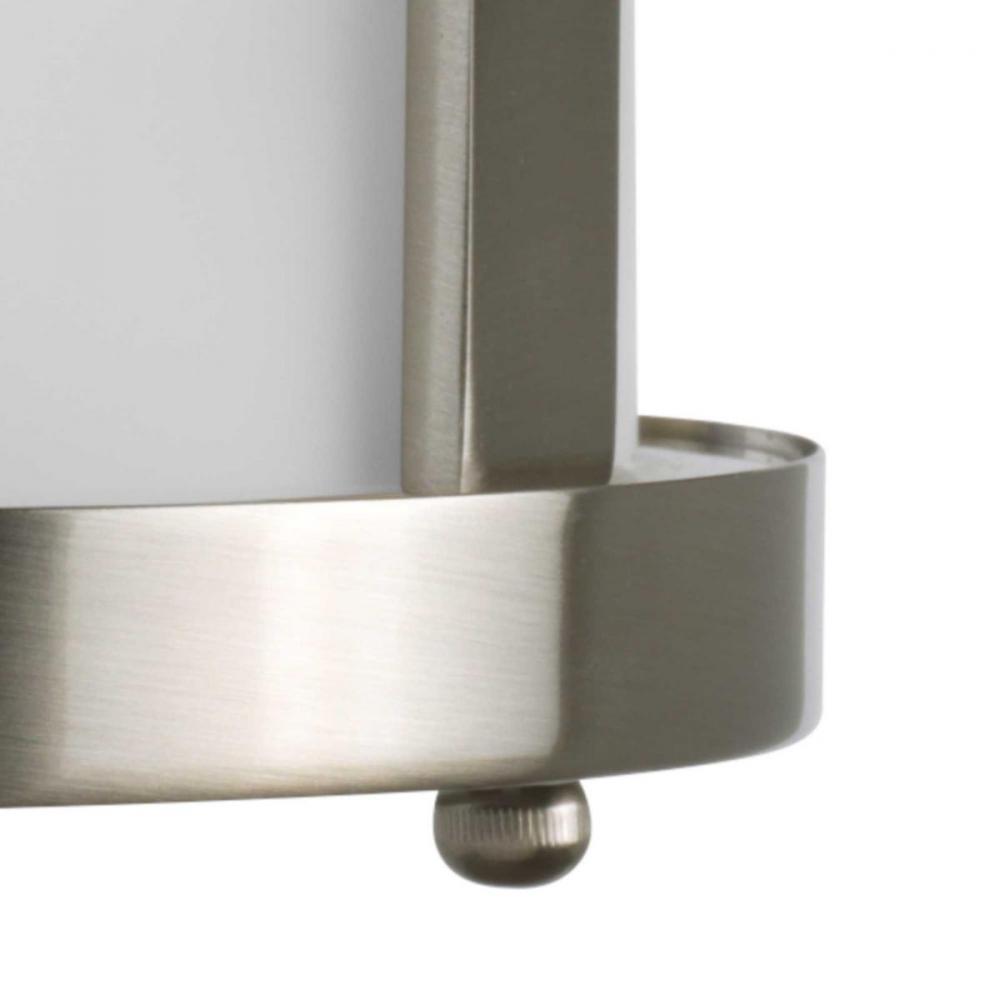 Distressed clear glass and etched opal glass.;A contemporary interpretation of antique nautical lanterns.;Brushed Nickel finish.