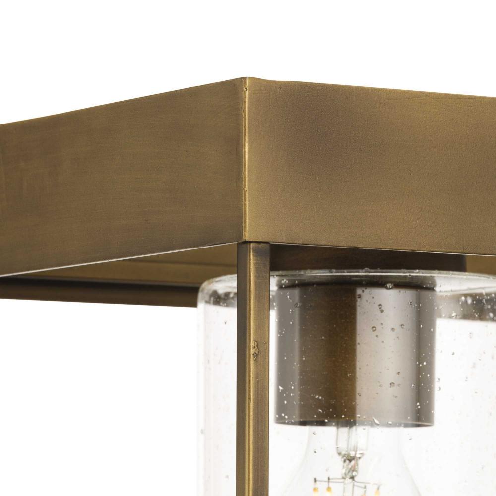 The fixture is coated with an lustrous aged bronze finish, enhancing its rustic design