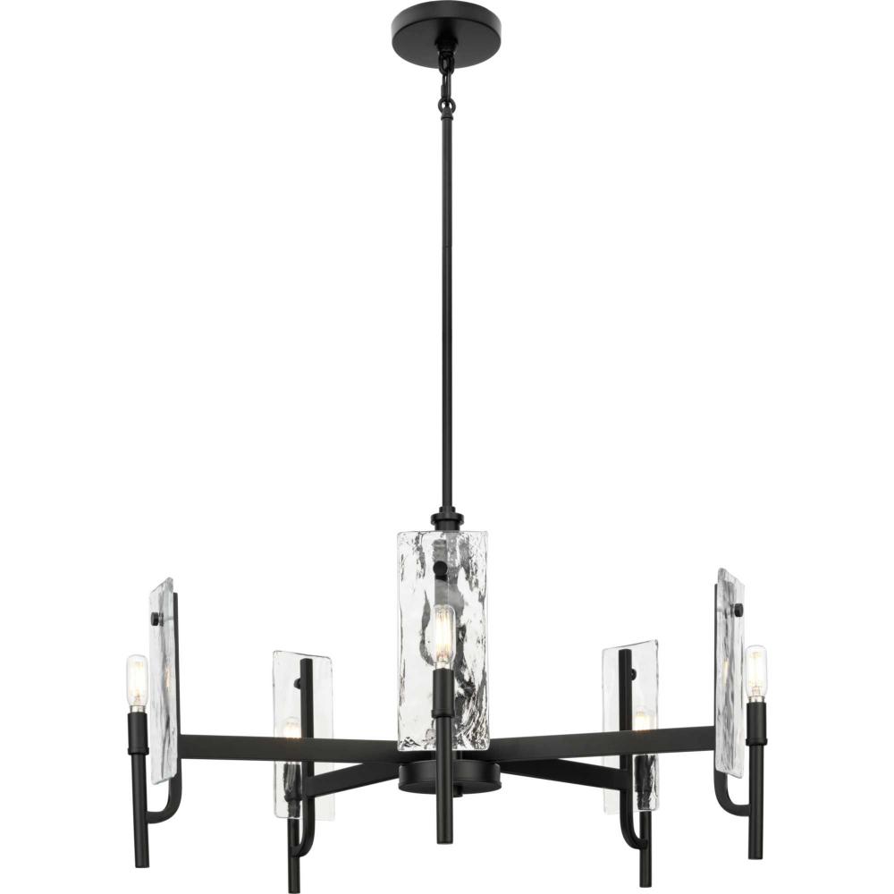 Indulge your artistic sensibility with luxurious lighting from the Rivera Collection. Softly filtered illumination through an icy display creates an otherworldly effect. Linear segments in rich, deep black tones frame billets of handcrafted, clear textured glass in a modern craftsman-inspired design.This fixture is part of the Progress Lighting Design Series, a lighting collection offering fashionable styles and affordable luxury lighting for the home.
