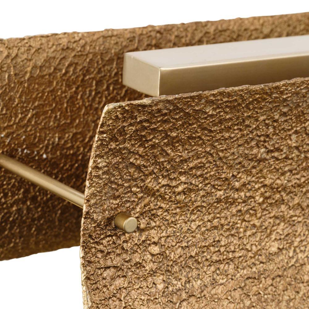 Its modernist frame is finished in a painted soft gold accented by foundry gold