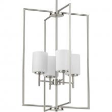 Perfect for making a statement by hanging in multiples in a foyer or over a large kitchen island or dining table;Clean, simple design is ideal for both transitional and modern interiors;Four-light pendant with a rectangular silhouette extending above and b