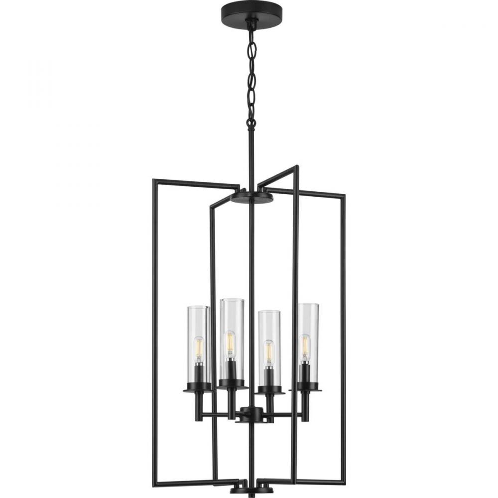 Application: Balance the best of modern and traditional with the Kellwyn Collection 4-Light Matte Black Clear Glass Transitional Foyer Pendant Light ideal for any foyer, dining room, stairway, or entryway.;Styles: Perfect for contemporary, traditional, and
