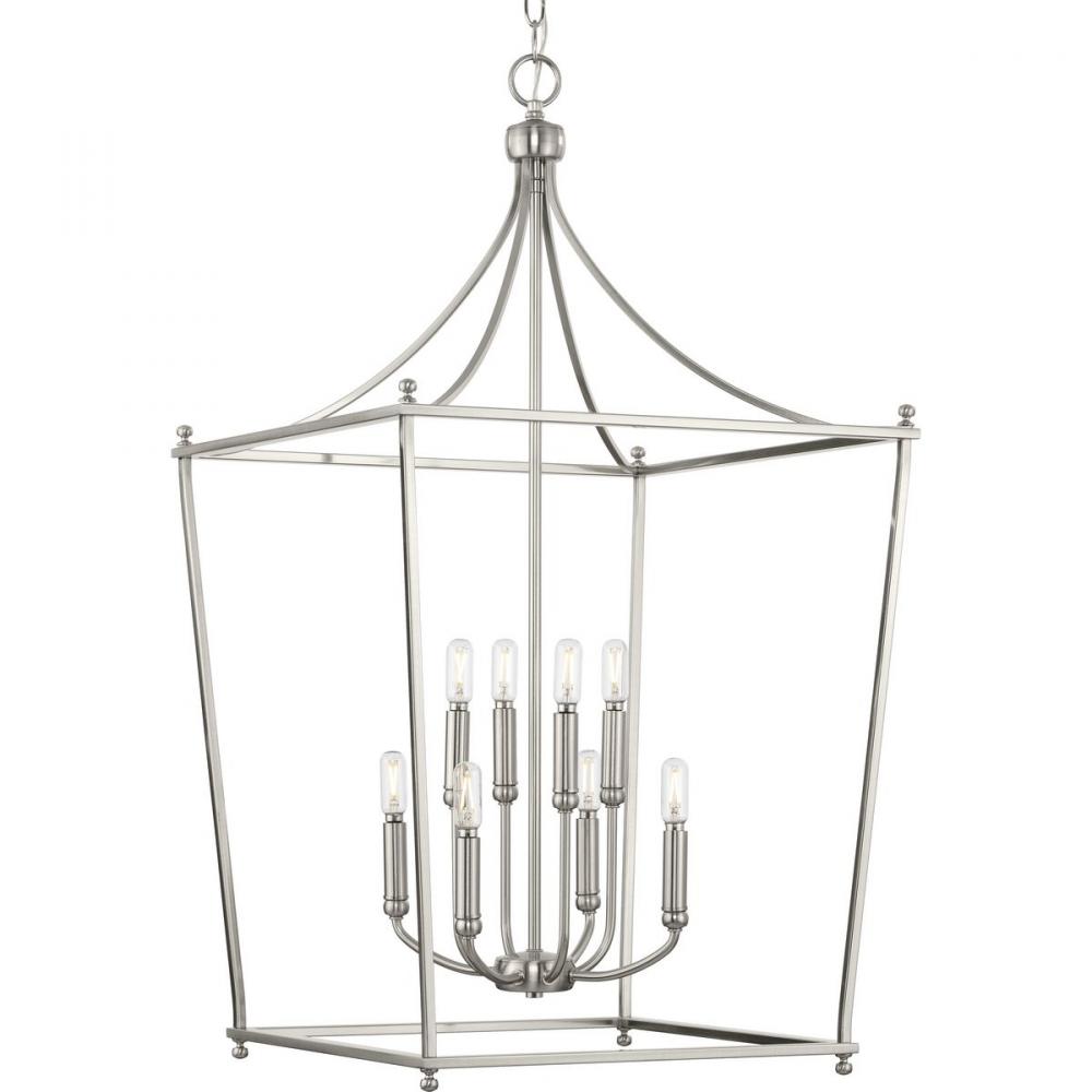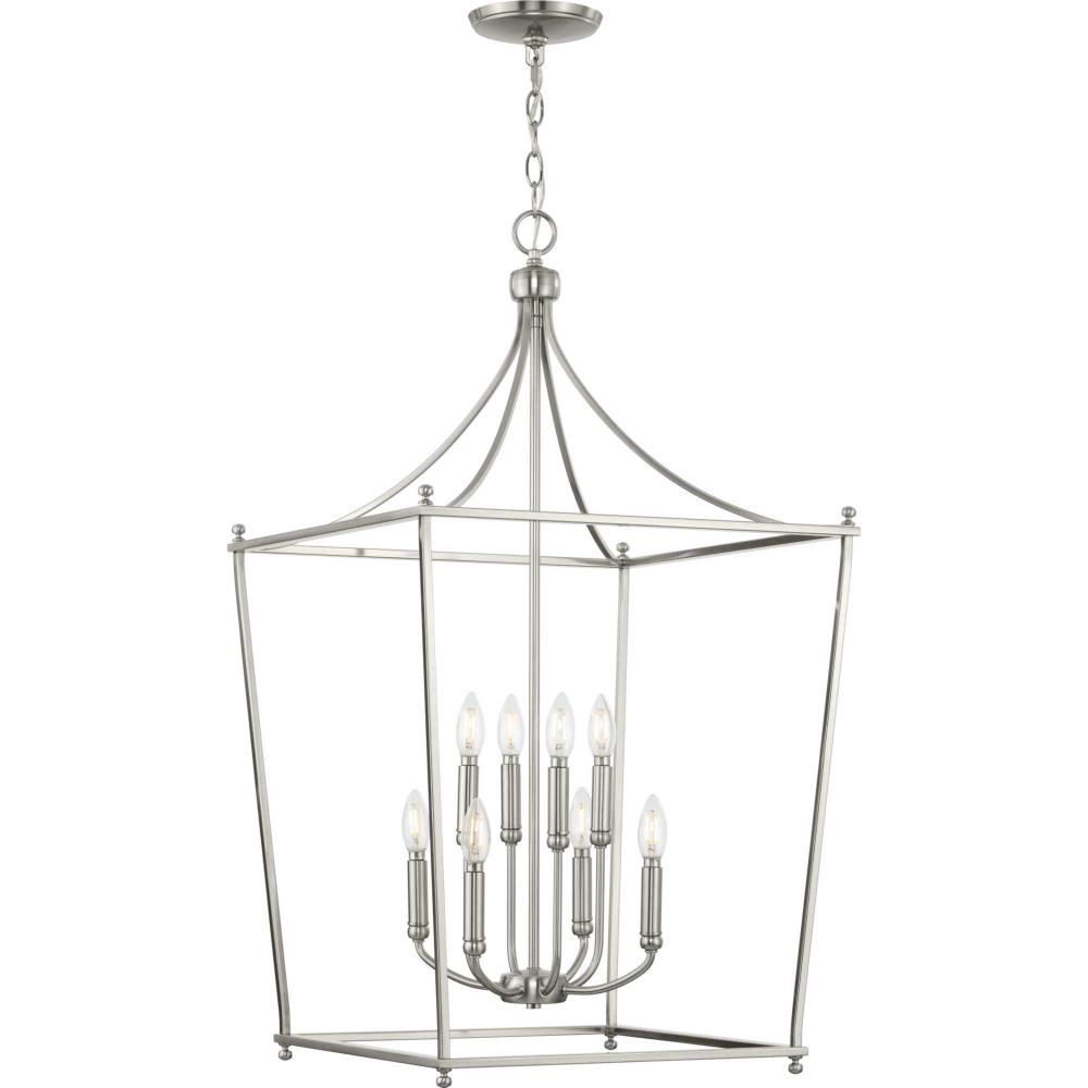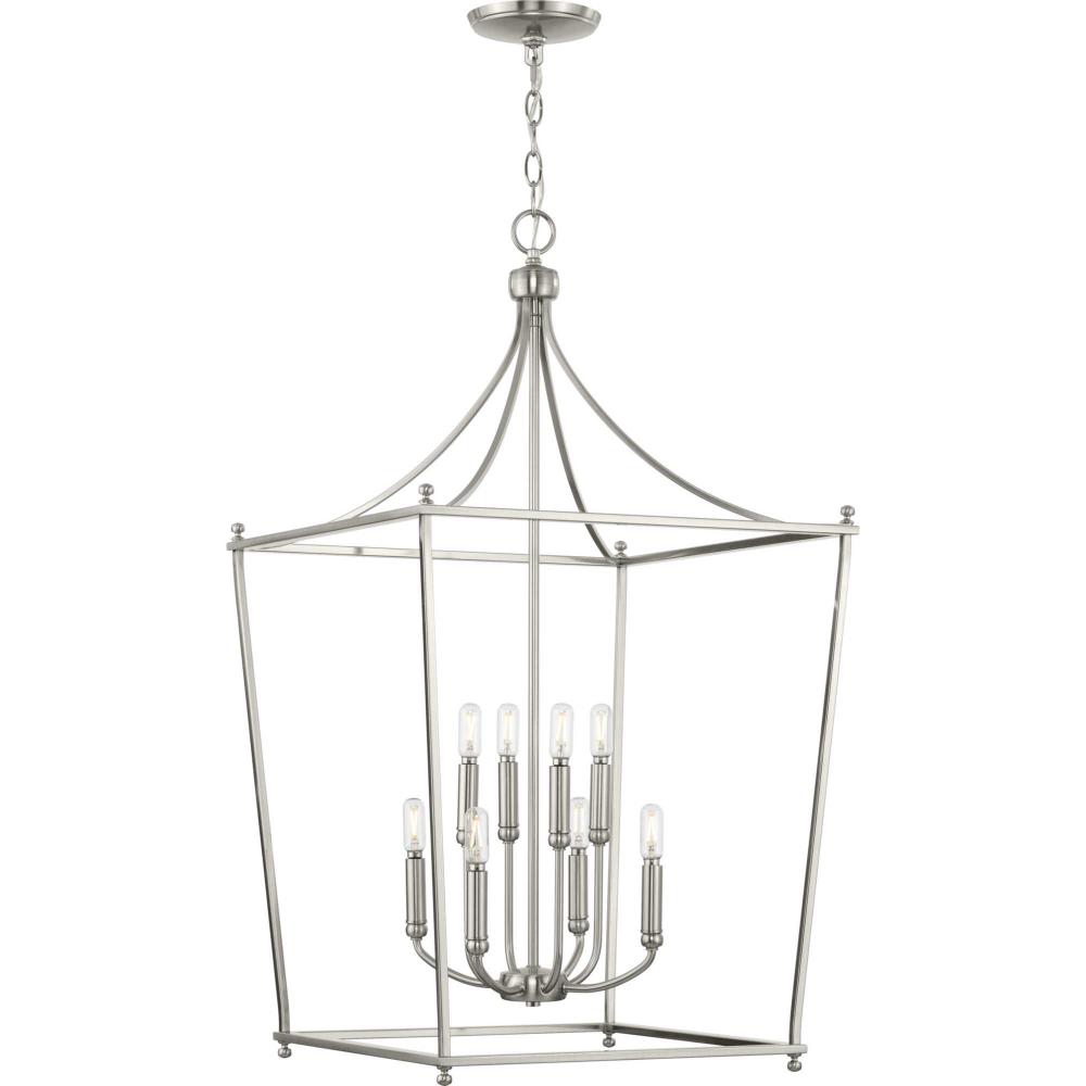 Graceful curves and bold angles combine to create a softly structured look in Parkhurst. An airy frame defines the form to produce unobstructed layers of light. This elegant foyer light is ideal for new traditional, modern farmhouse, and transitional interiors.