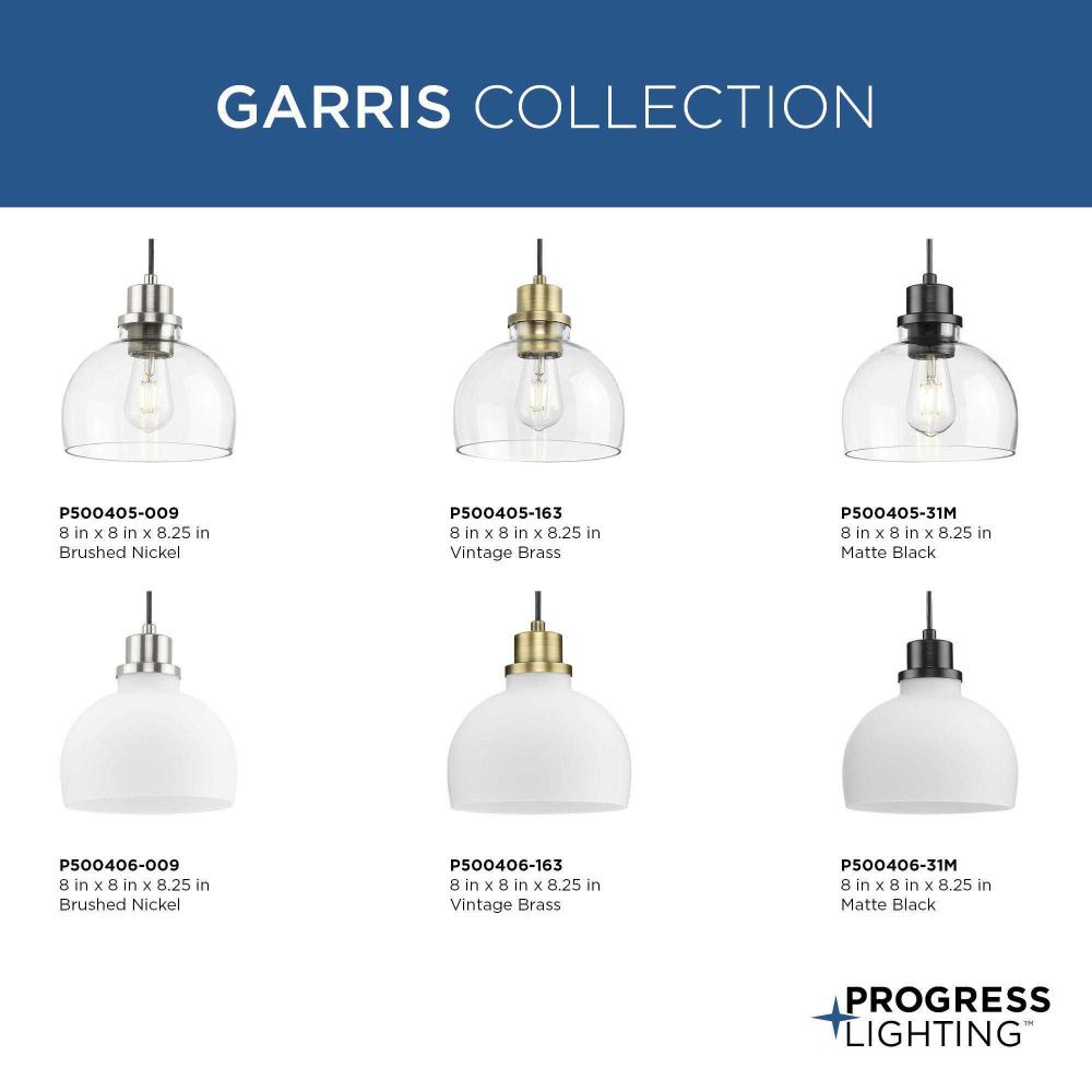 The clean lines of a domed glass diffuser topped with a vintage metal cap finished in beautiful brushed brass give a nostalgic look to the Garris Collection. A simple cord suspension and a clear glass shade offers a stylish modern touch to transitional and modern farmhouse interiors. Install singly or in multiples to provide crisp task illumination to kitchen islands, bars and bedrooms.