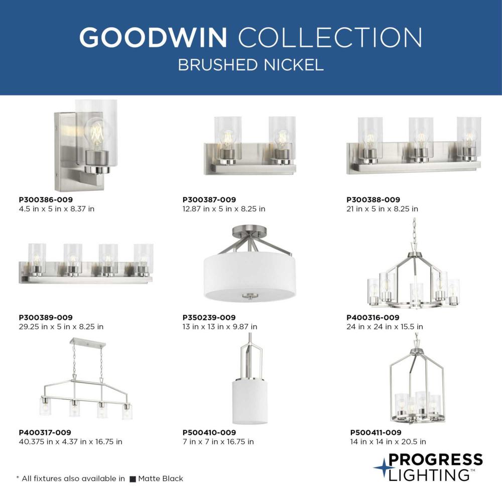 Goodwin features a clean design that is ideal for halls, foyers, stairways, kitchens, closets, bedrooms, and breakfast nooks