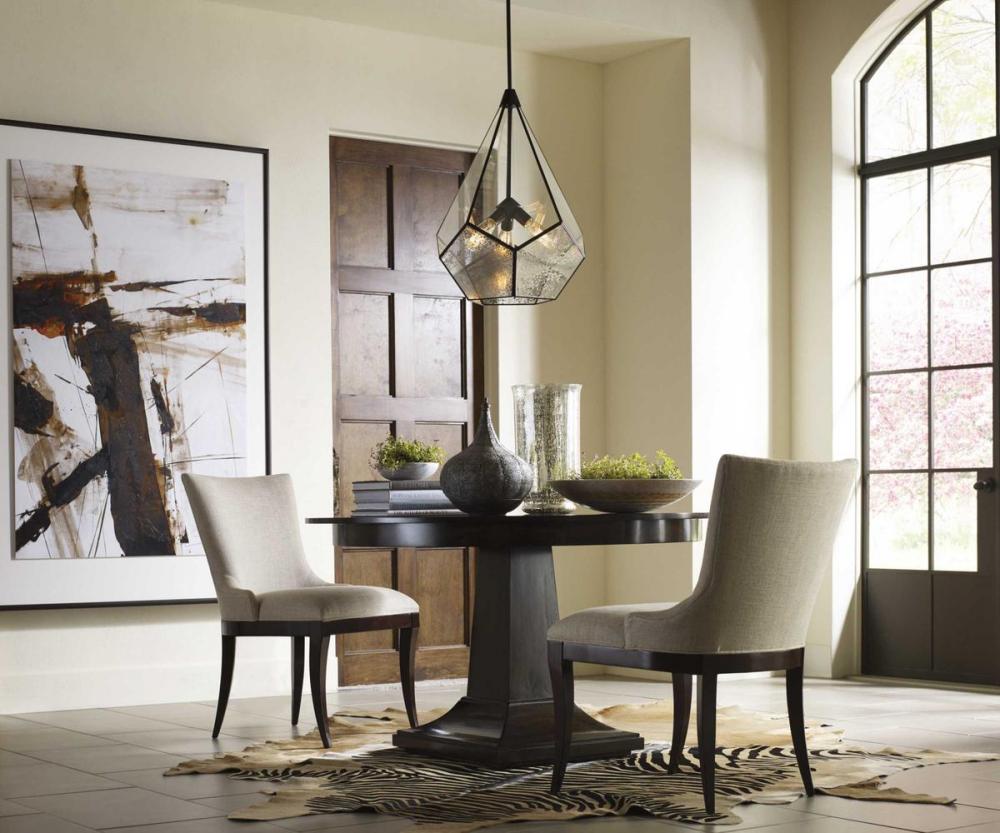 Antique Bronze finish.;Inspired by modern geometric designs.;Five-sided bottom panels display antique mirrored glass.;Upper panels made of clear glass.;Includes one 6", four 12" stems and 6 links of chain.