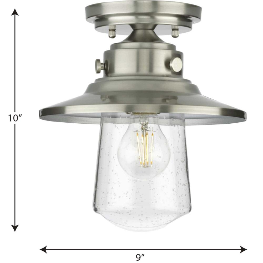 Welcome family and friends home with the Tremont Collection 1-Light Stainless Steel Clear Seeded Glass Farmhouse Outdoor Semi-Flush Mount Light. Mechanical stainless-steel fittings and a circular ceiling plate offer industrial detail to the design. A seeded glass shade fosters a tailor-made rustic look.