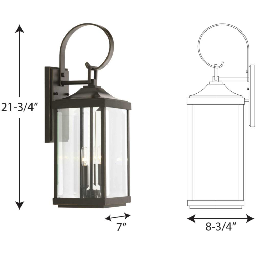 Antique Bronze finish.;Elongated frame.;Captures the romantic charm of a vintage gas lantern.;Clear beveled glass.