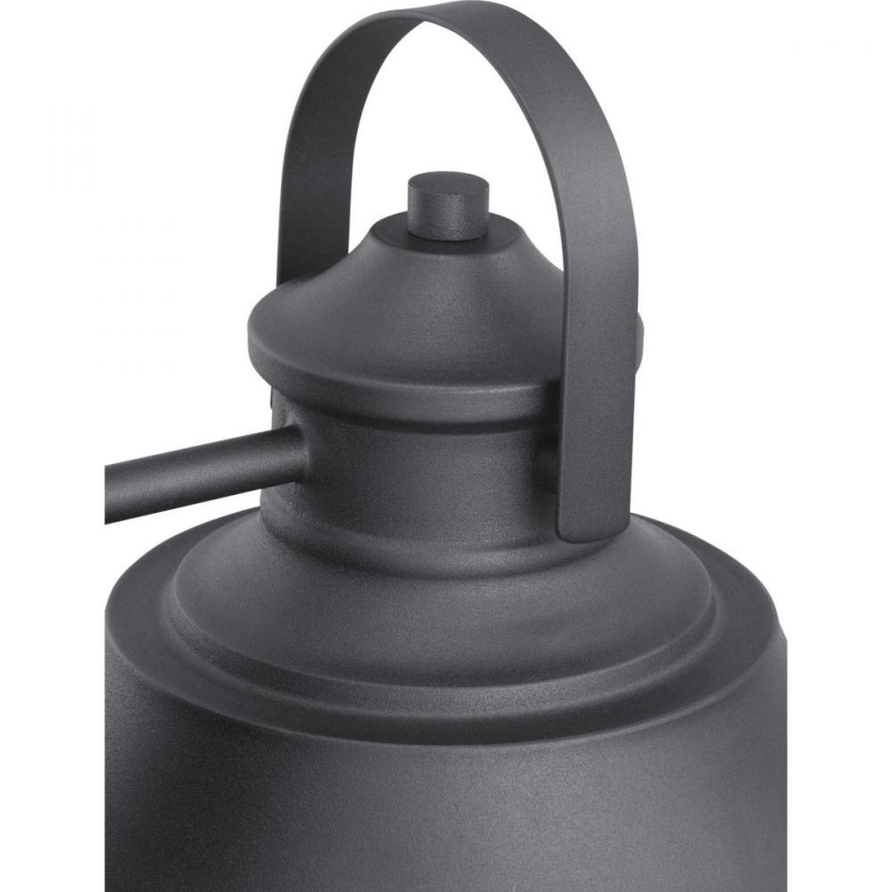 Featuring nautical influences, Weldon delivers a large wall lantern ideal for Farmhouse or Transitional architecture designs. Curved clear seeded glass is topped with an ample roof in Black.