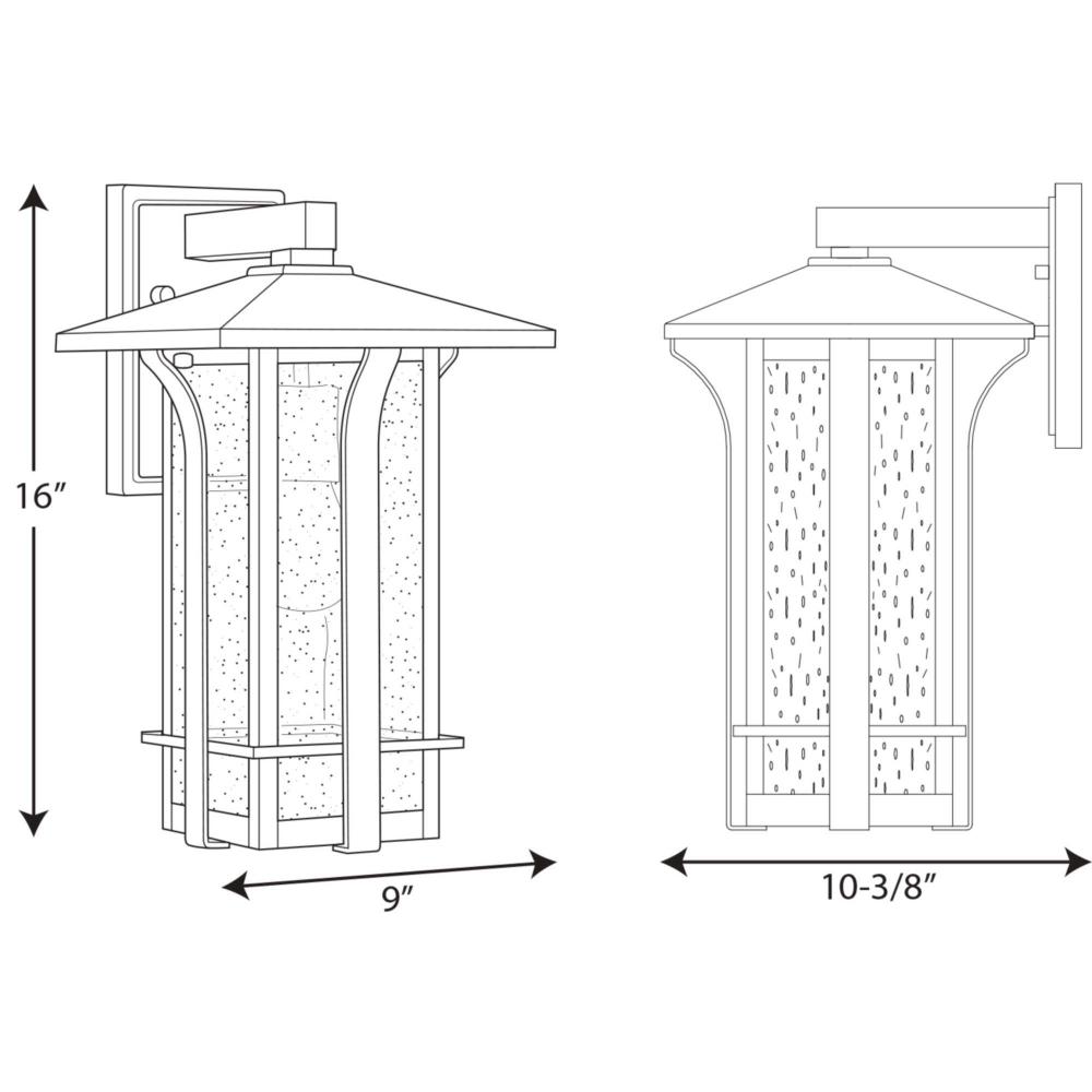 Bold scale and Craftsman inspiration adds handsome punctuation to a home’s entry and facade;Its deep finish contrasts against the gauzy seeded-glass shade;The medium wall lantern makes a cheerful greeting on either side of an entry door, flanking an outd