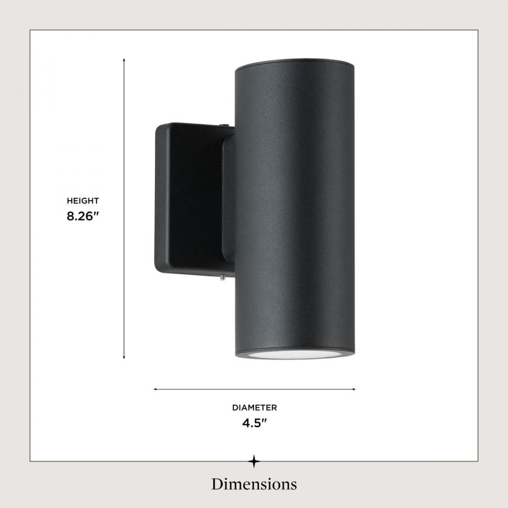 Sleek, 3" LED cylindrical wall lantern with up/downlight in elegant Black finish. Die-cast aluminum wall brackets and heavy-duty aluminum framing. Fade and chip-resistant. UL listed for wet locations. Can be used indoor or outdoor.