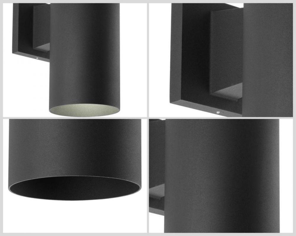 5" LED up down wall cylinder - wall lantern in Black. The P5675 Series are ideal for a wide variety of interior and exterior applications including residential and commercial. The Cylinders feature a 120V alternating current source and eliminates the need for a traditional LED driver. This modular approach results in an encapsulated luminaire that unites performance, cost and safety benefits. Specify P860045 top cover lens for use in wet locations.