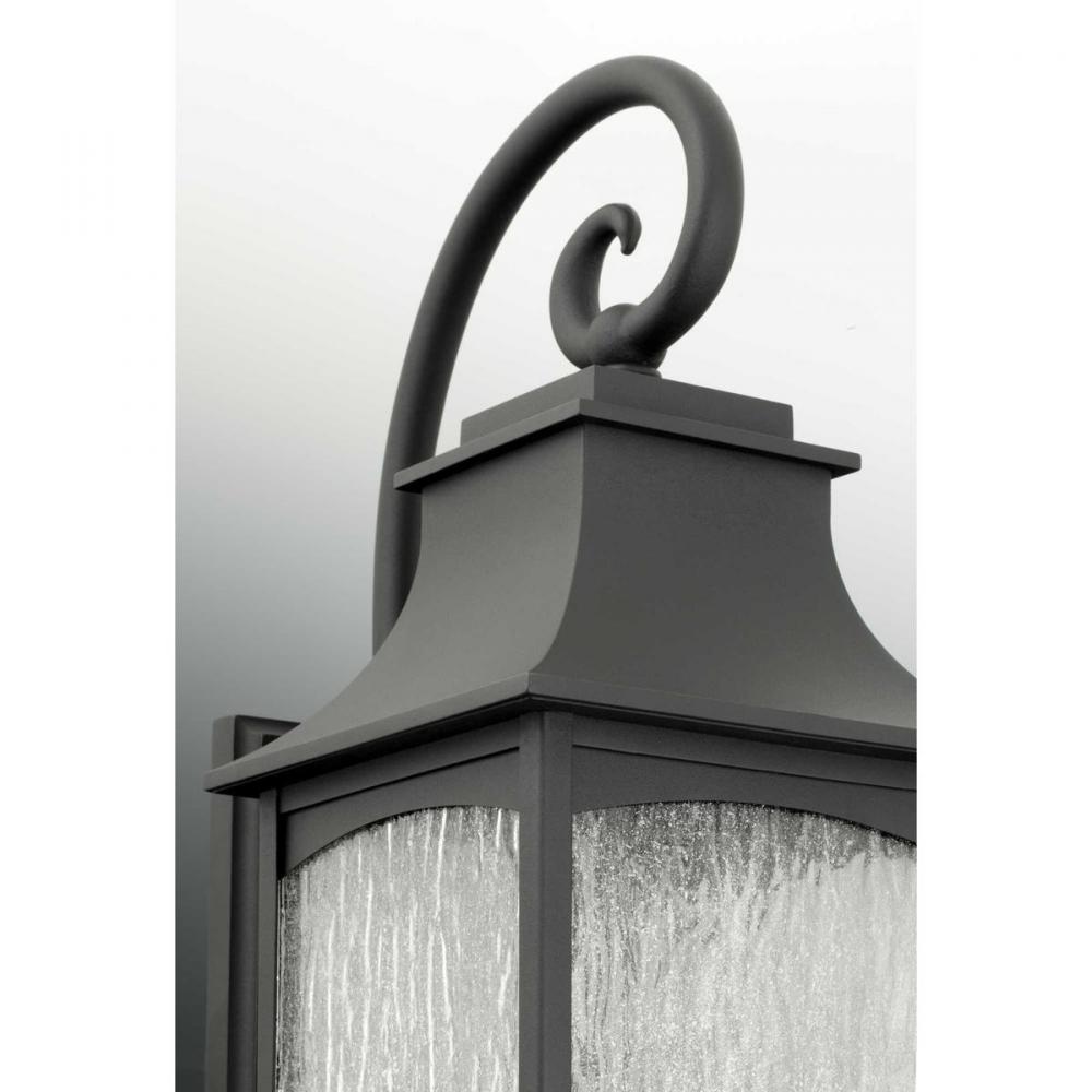 Two-light medium wall lantern in the Maison Collection offers traditional French country styling for a variety of home settings. Classic and formal clear water seeded glass complements the powder coat finish. Black finish.