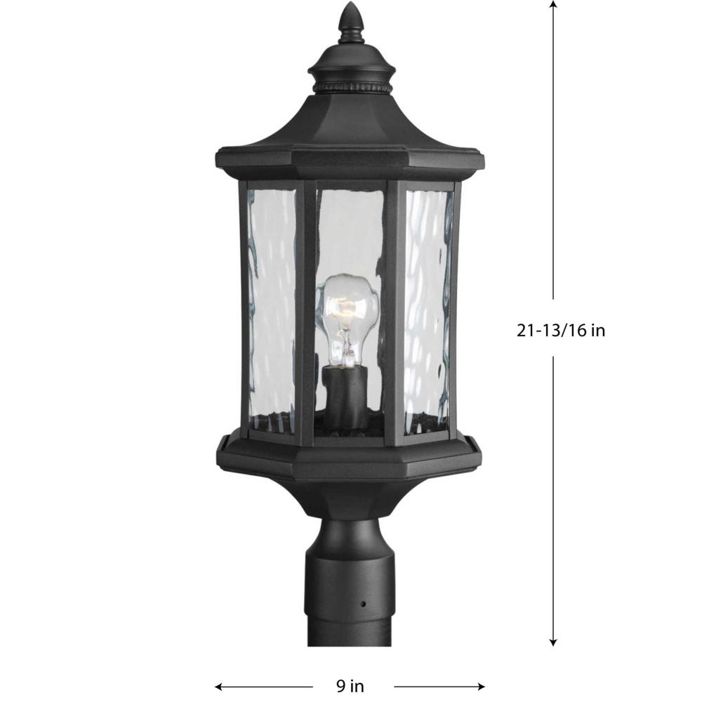 One-light post lantern with a distinct octagonal shape for classic styling, highlighted by clear water glass elements.