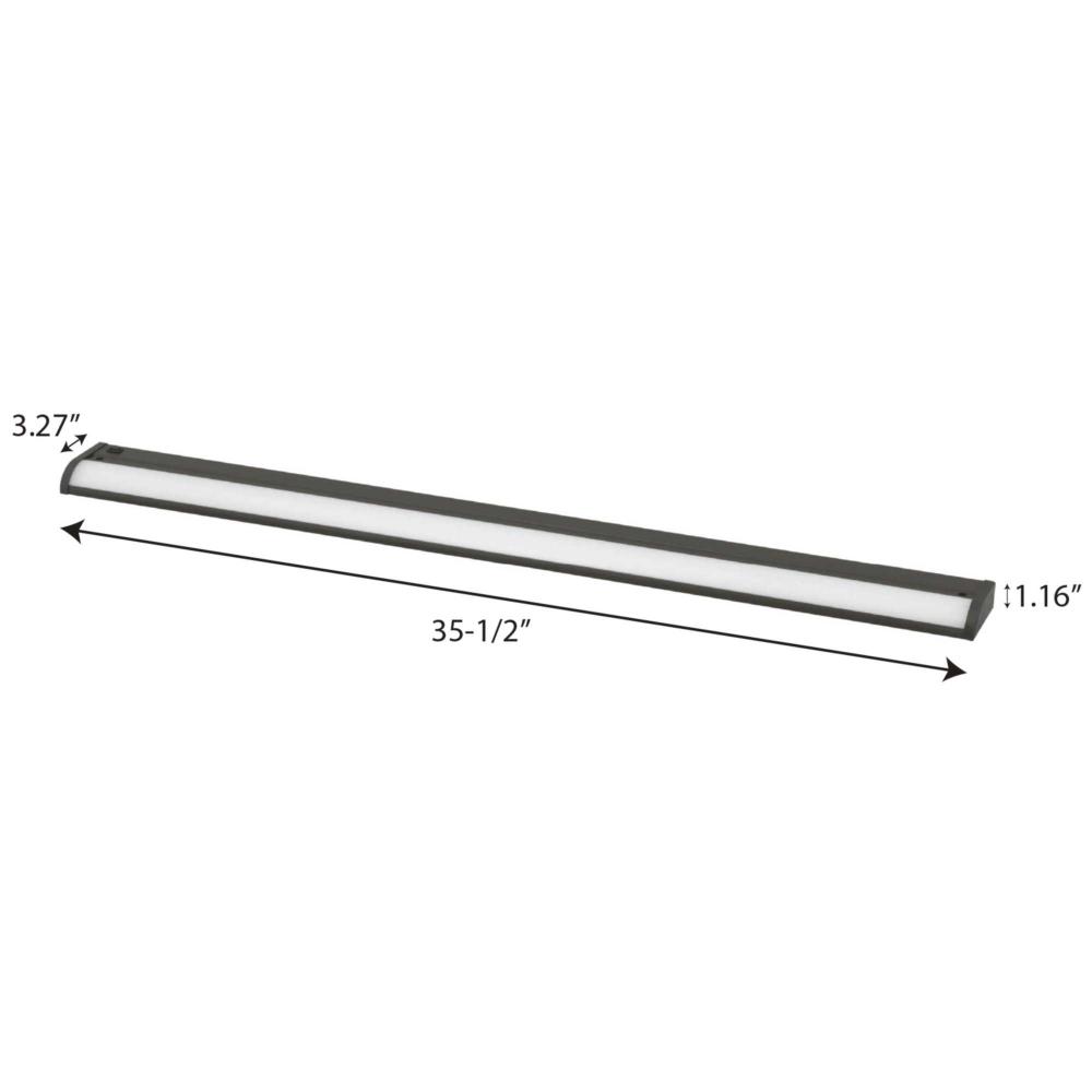 36" linear undercabinet fixture;Antique Bronze powder coat finish;Extruded aluminum construction;Angled lens design to ensure proper illumination;Integral ON/OFF switch;Dimmable to 10% with many Forward Phase (Triac) or Electronic Low Voltage (ELV) dim