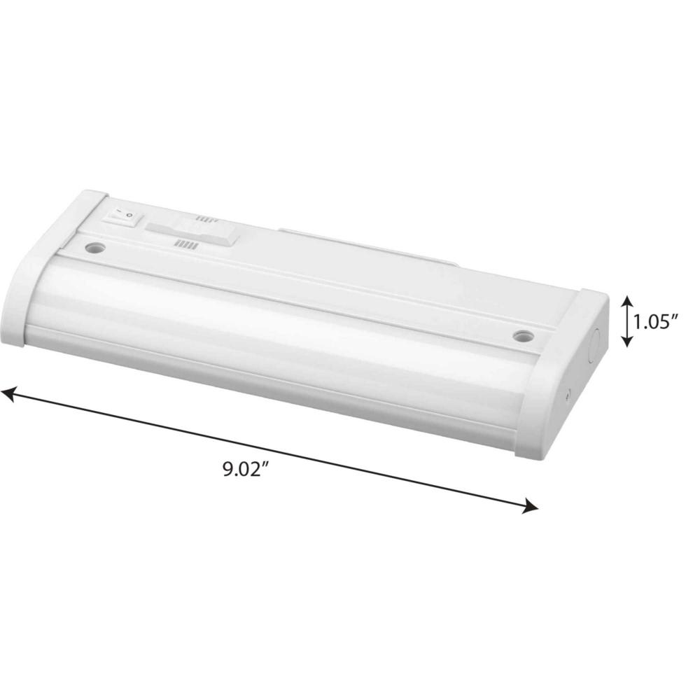 Combine elegant design with energy-efficient LED light in the Hide-A-Lite Collection 1-Light 9-Inch Satin White Modern LED Linear Undercabinet Light. The fixture's frame is coated in a crisp satin white finish. An access plate and quick connect wire connectors make installation easy. The fixture is directly wired. Two armored cable fittings are included. The 5-CCT selectable LED light engine offers flexibility in application, allowing the choice of 5 different color temperatures allowing for the best lighting color to fulfill the design intent. An on-off switch on the front allows for easy task light illumination.
