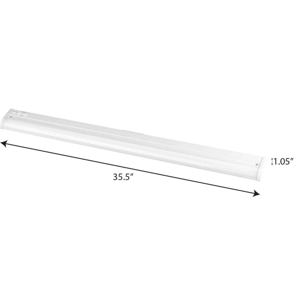 Combine elegant design with energy-efficient LED light in the Hide-A-Lite Collection 1-Light 36-Inch Satin White Modern LED Linear Undercabinet Light. The fixture's frame is coated in a crisp satin white finish. An access plate and quick connect wire connectors make installation easy. The fixture is directly wired. Two armored cable fittings are included. The 5-CCT selectable LED light engine offers flexibility in application, allowing the choice of 5 different color temperatures allowing for the best lighting color to fulfill the design intent. An on-off switch on the front allows for easy task light illumination.