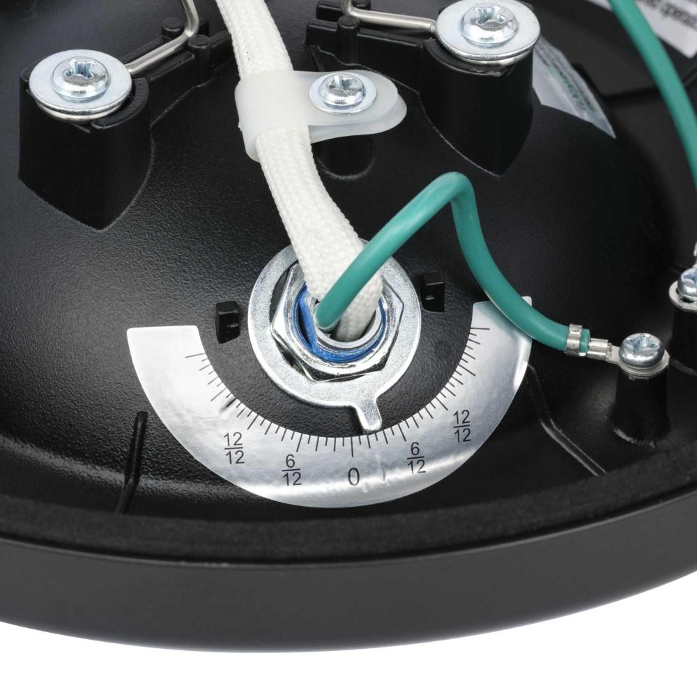 An integrated ceiling pitch indicator easily adjusts the light to match the ceiling pitch