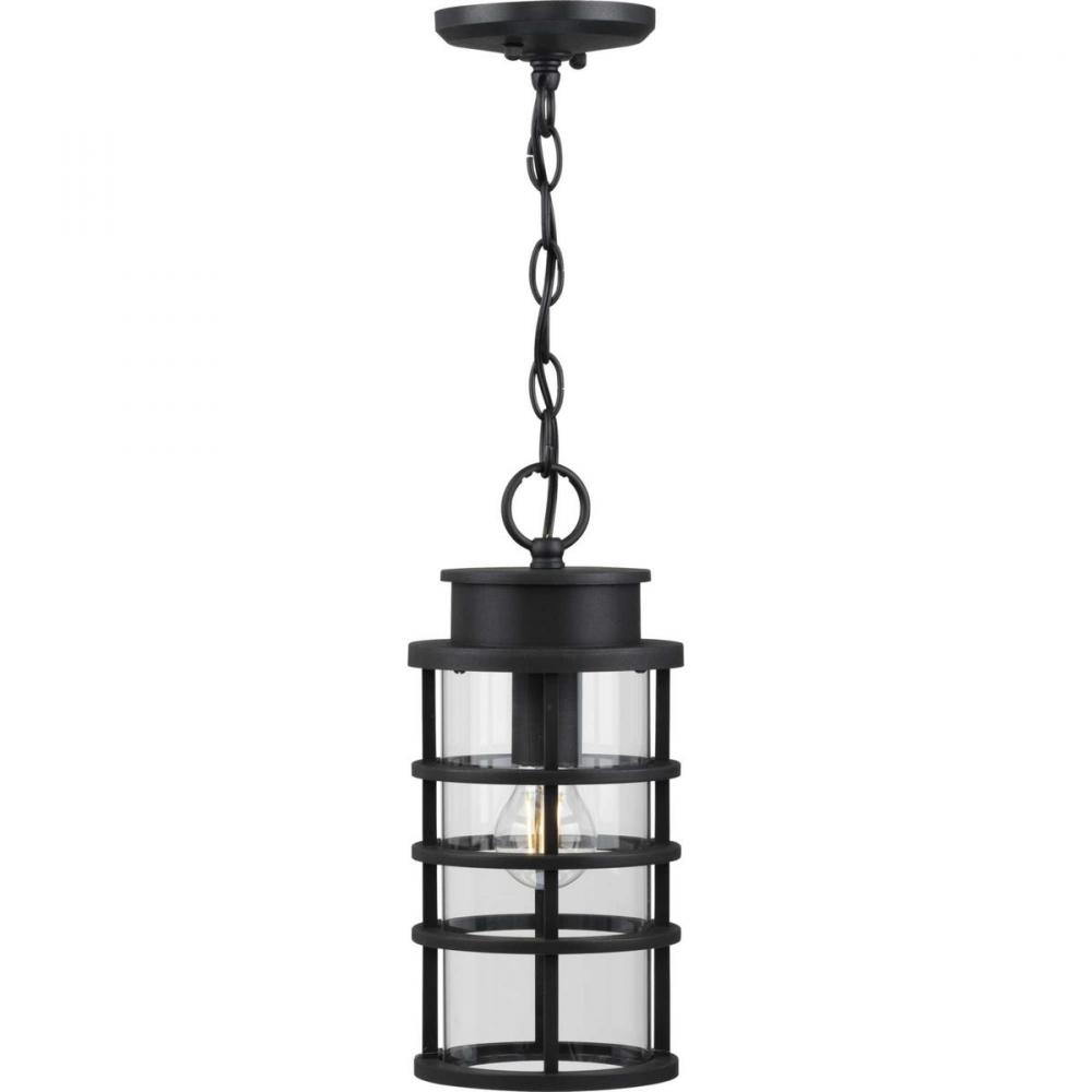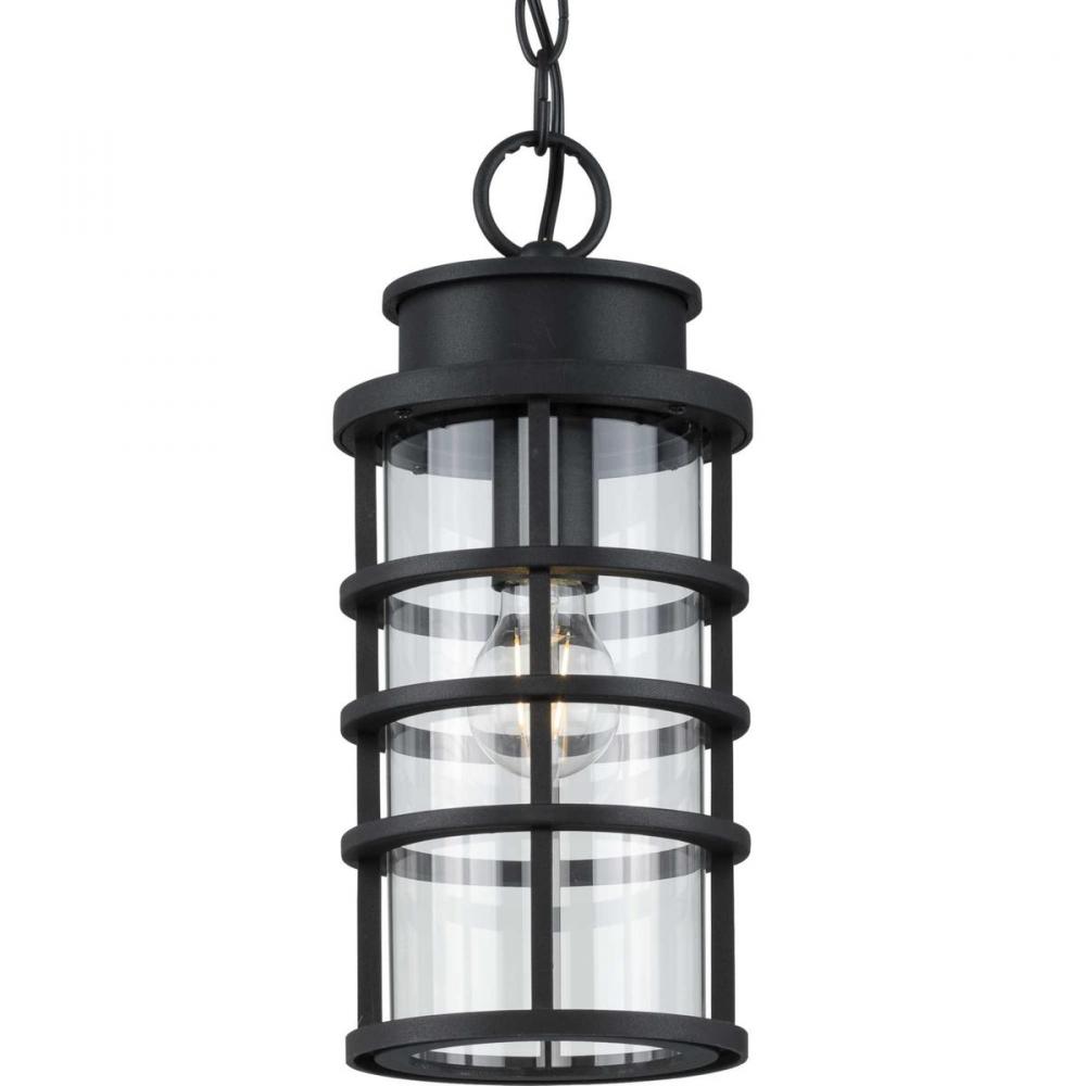 This Hanging Lantern Distills Both Industrial And Artisan Influences With Its Signature Ribbed Black Frame Constructed From Durable Corrosion-Resistant, Composite Polymer. Inside The Ribs Rests An Elongated, Clear Glass Shade That Adds To The Light Fixture'S Modern Flair. The Design'S Blend Of Industrial And Coastal Inspiration Makes It A Perfect Light Fixture For Updating Your Favorite Spaces In And Around Your Home. Durashield By Progress Lighting Is Built To Last. Constructed From A Composite Material With Uv Protection, Durashield Holds Up Even In The Harshest Weather Conditions. This High-Performance Finish Has A 5-Year Warranty And Is Resistant To Rust, Corrosion, And Fading.