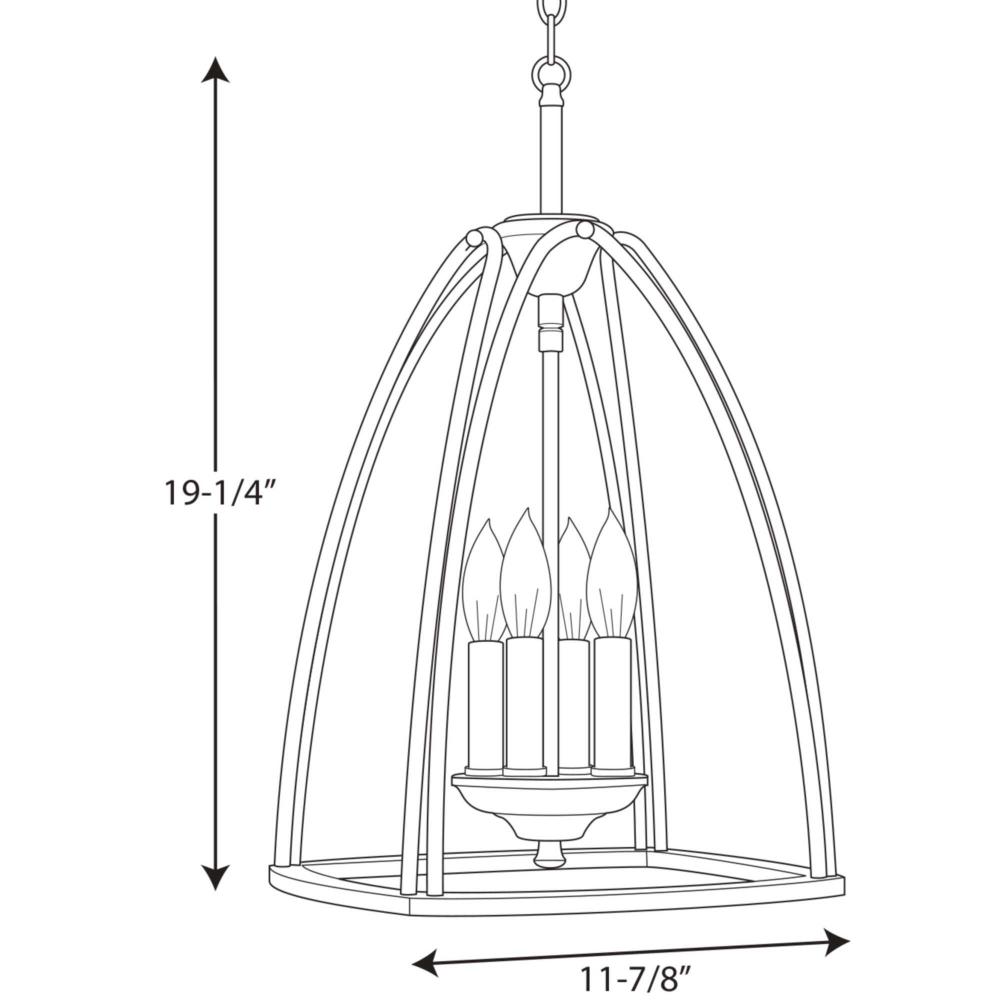 The four-light 11-7/8" foyer in the Tally Collection embraces a simplified classic form that is updated with modern inspiration. The open foyer with the four-light cluster offer visual interest and enhance relaxed environments. This simple foyer goes with many styles and families in the Progress Lighting line. Antique Bronze finish.