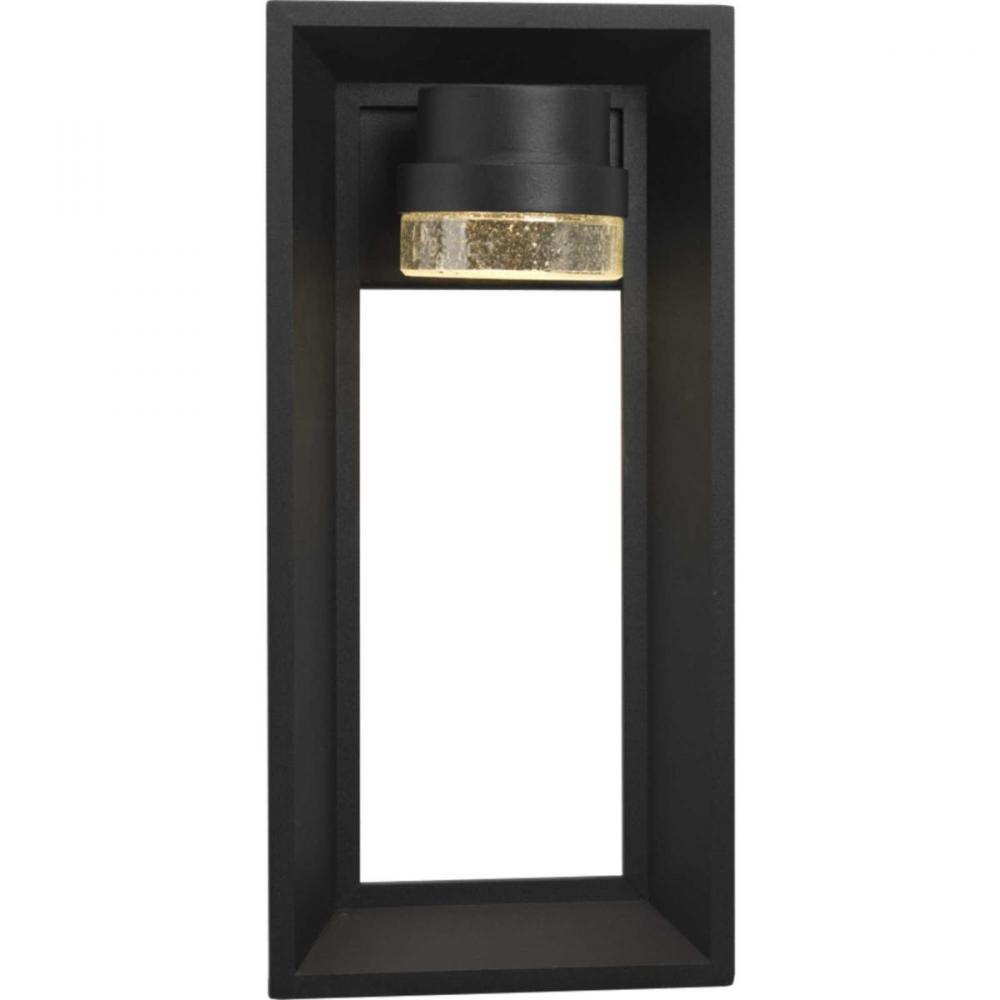 Black finish.;Modern outdoor sconce.;Open linear frame.;Seeded glass diffuser.;Meets California Title 24 - JA8 - 2016.;624 lumens 66 lumens/watt per module (source);3000K color temperature, 90+ CRI.